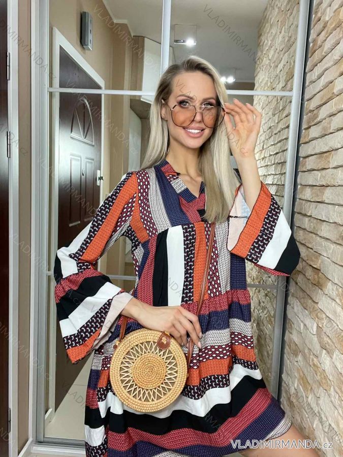 Summer long sleeve flowered women's dress (UNI S / L) ITALIAN FASHION IMK20150