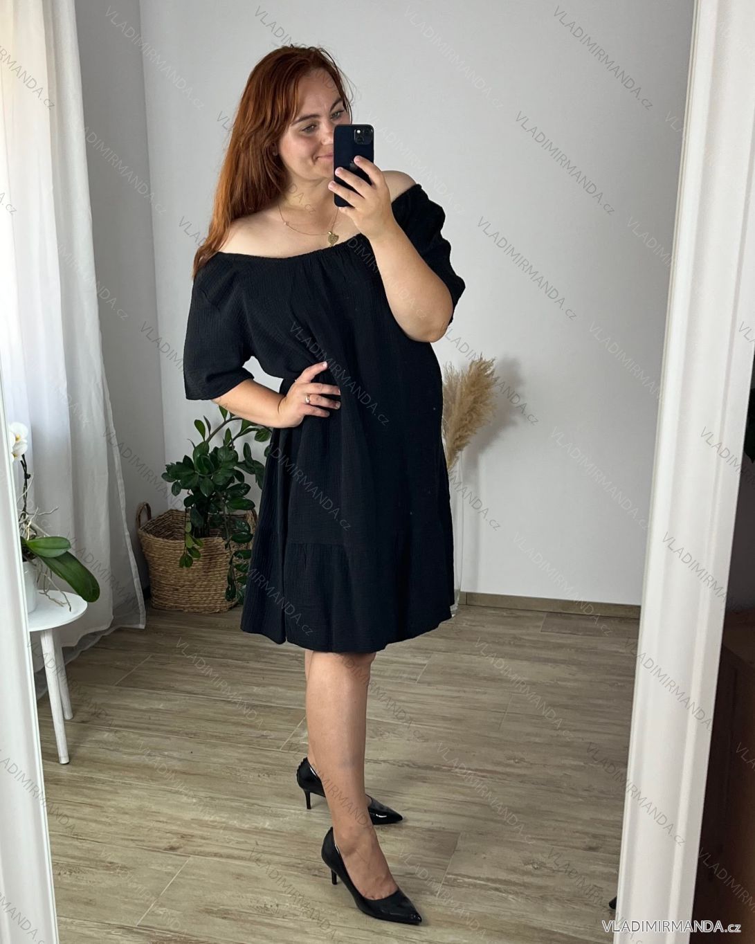 GOODS (119503) > Women's clothing (80843) > dress (30309) > Summer muslin carmen dress for women (48/52 ONE SIZE) ITALIAN FASHION IM424294