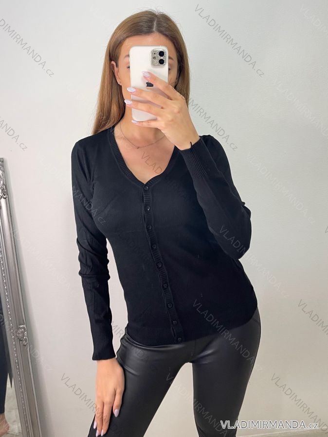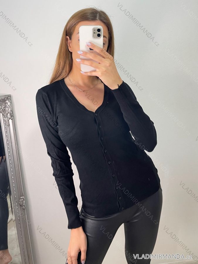 Svetr tenký na knoflíčky dlouhý rukáv dámský (S/M ONE SIZE) ITALSKá MóDA IMM22Fd9072 S/M light pink