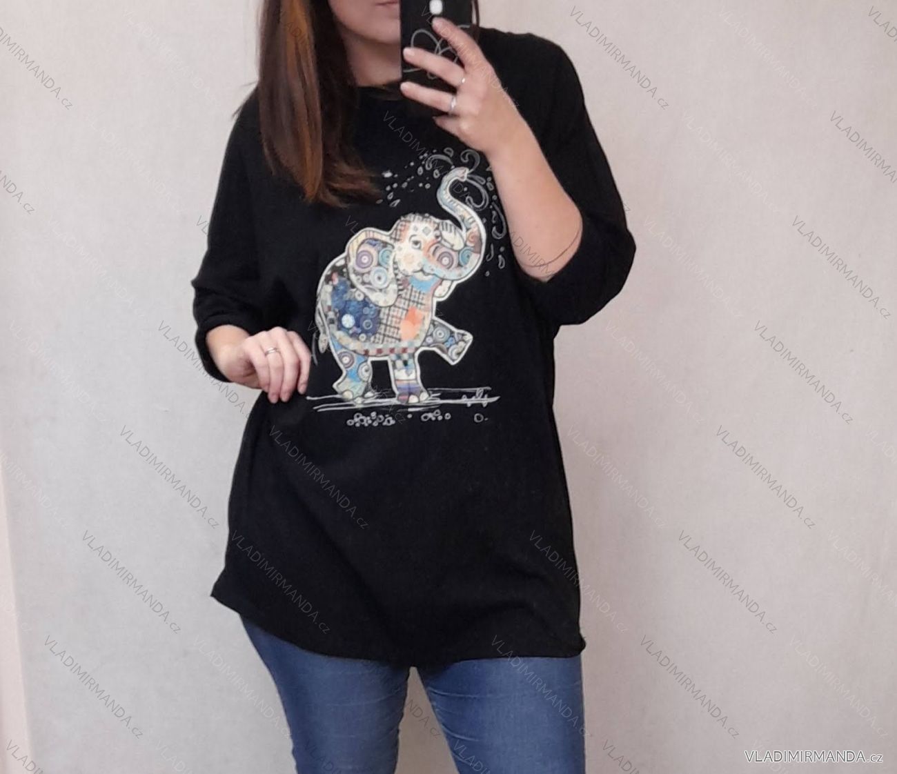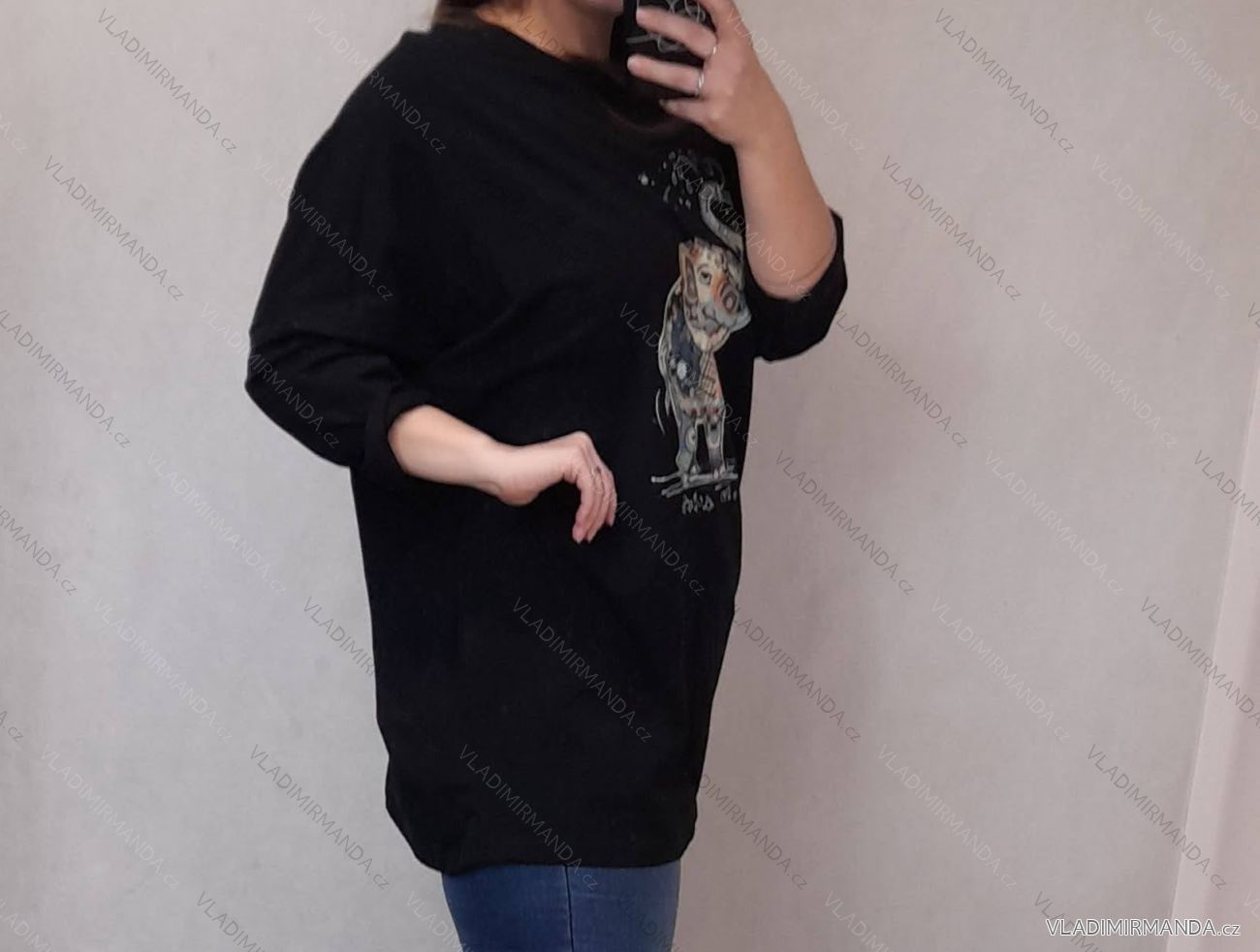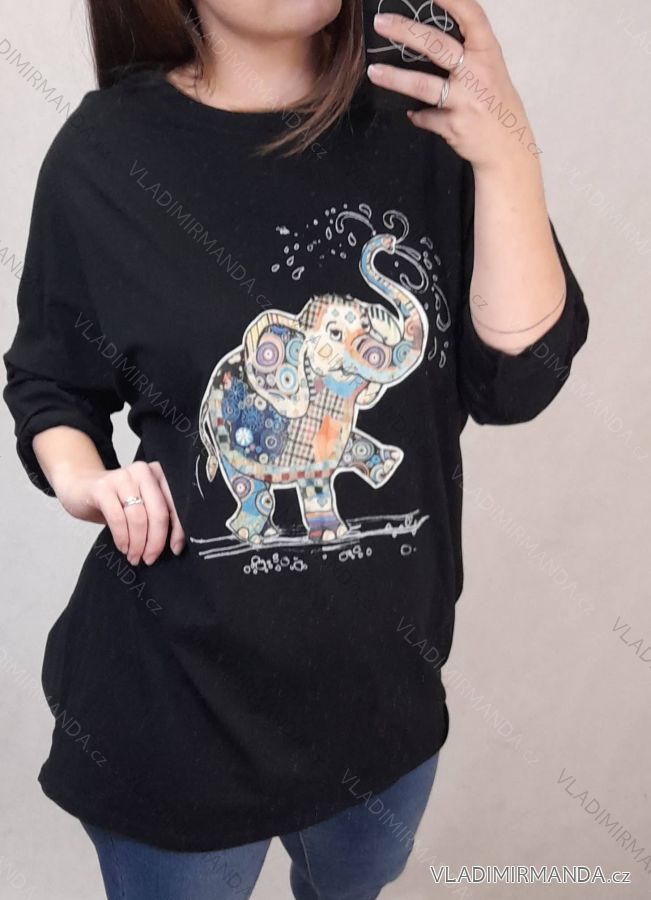 Tunic Shirt 3/4 Long Sleeve Ladies (uni M / L) ITALIAN FASHION IM419769 4XL / 5XL black