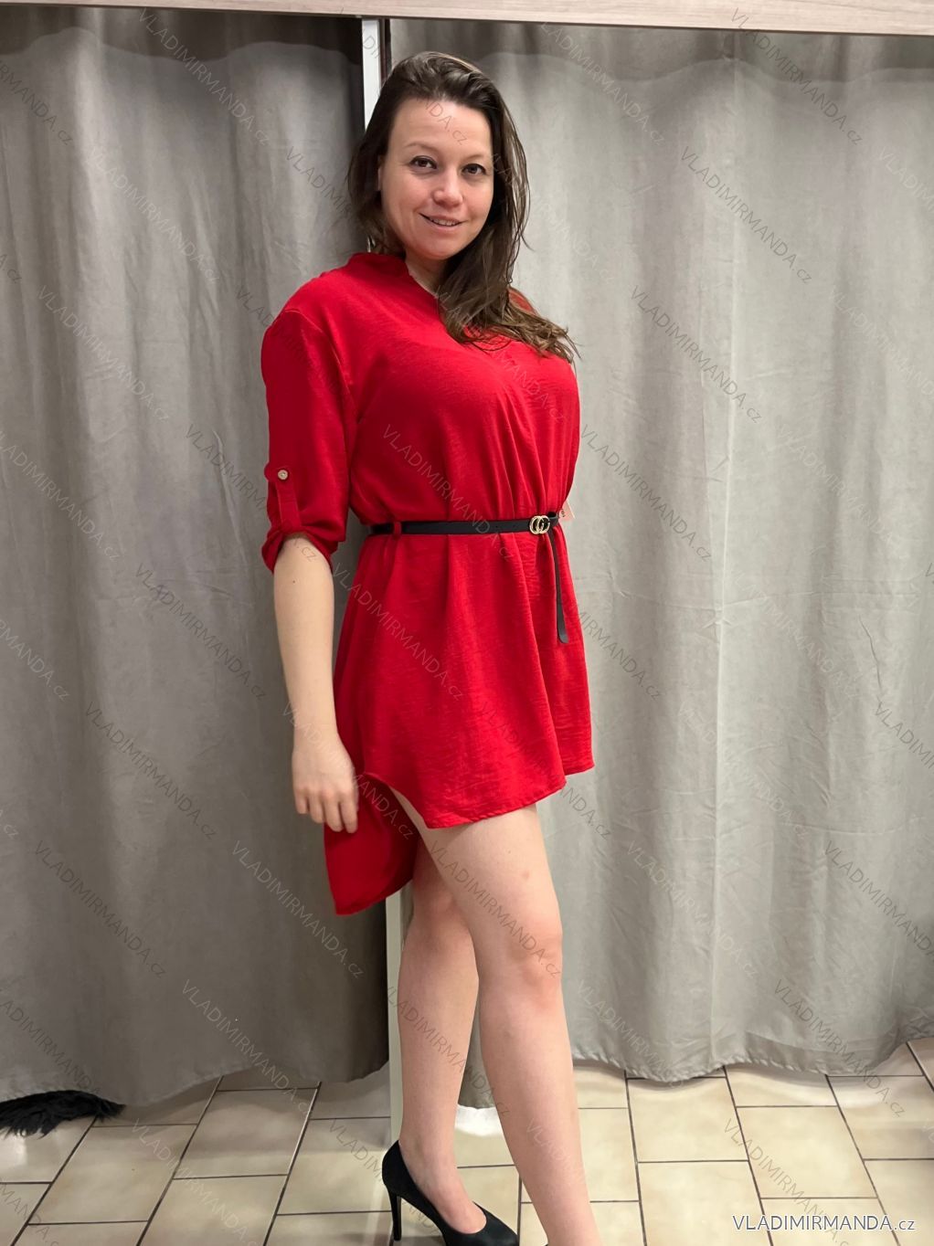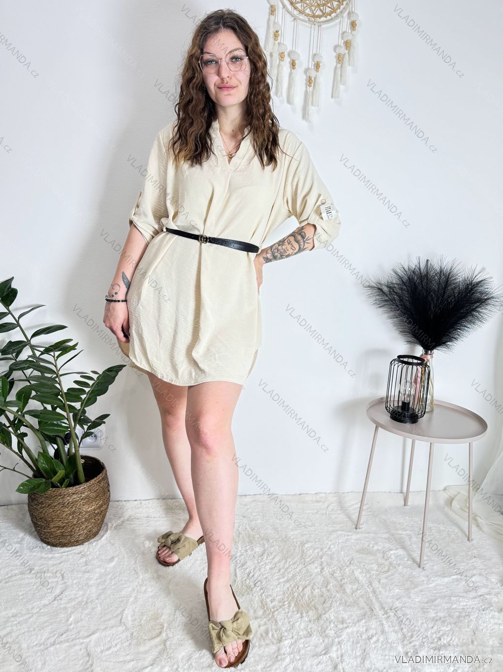GOODS (120725) > Women's clothing (82091) > Tops, t-shirts, tunics and tank tops (13141) > Tunics (5376) > Long sleeve tunics (2503) > Tunic Shirt Extended With Belt 3/4 Long Sleeve Women's Plus Size (XL/2XL ONE SIZE) ITALIAN FASHION IMC22513