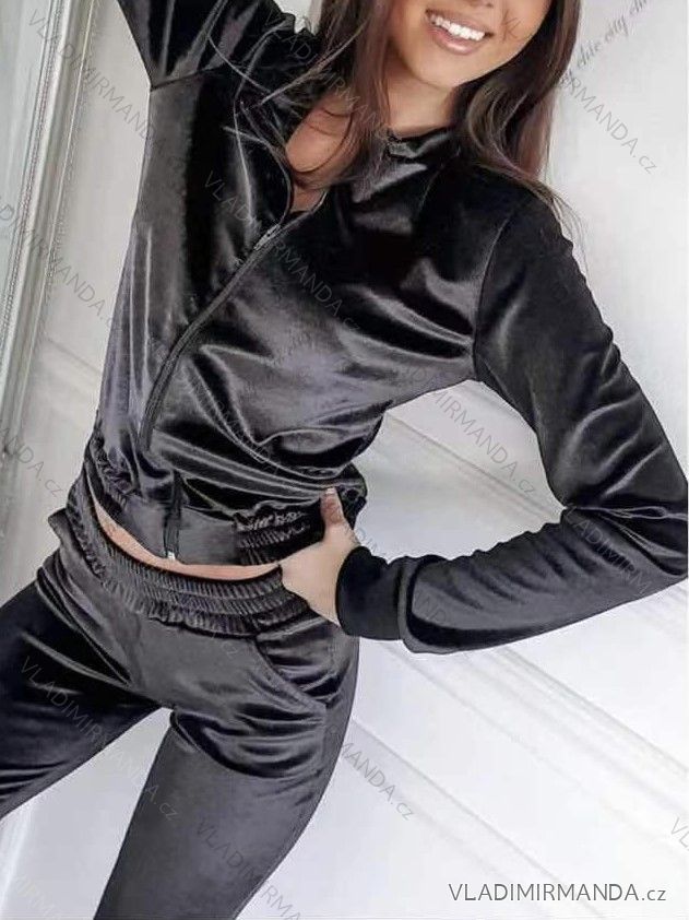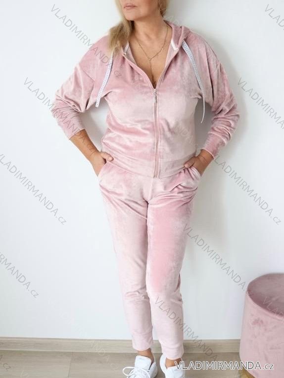Velvet Zip Hoodie Set Long Sleeve Sweatpants Women's Long (S / M ONE SIZE) ITALIAN FASHION IMWY21735