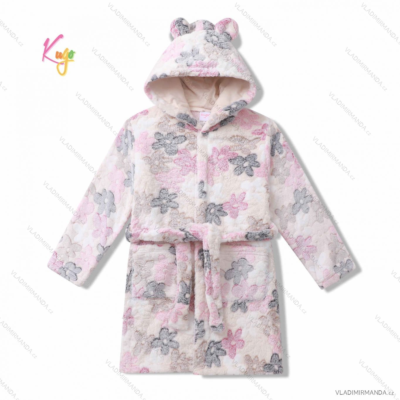 Warm fluffy bathrobe with hood for girls (98-128) KUGO FZ-6717