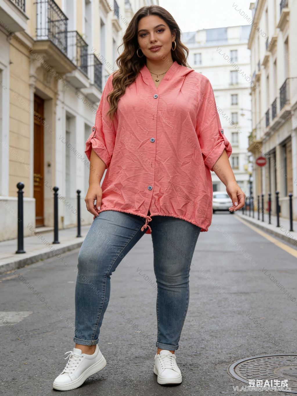 Women's 3/4 long sleeve button-down shirt, oversized (54/56/58 ONE SIZE) ITALIAN FASHION IM426085