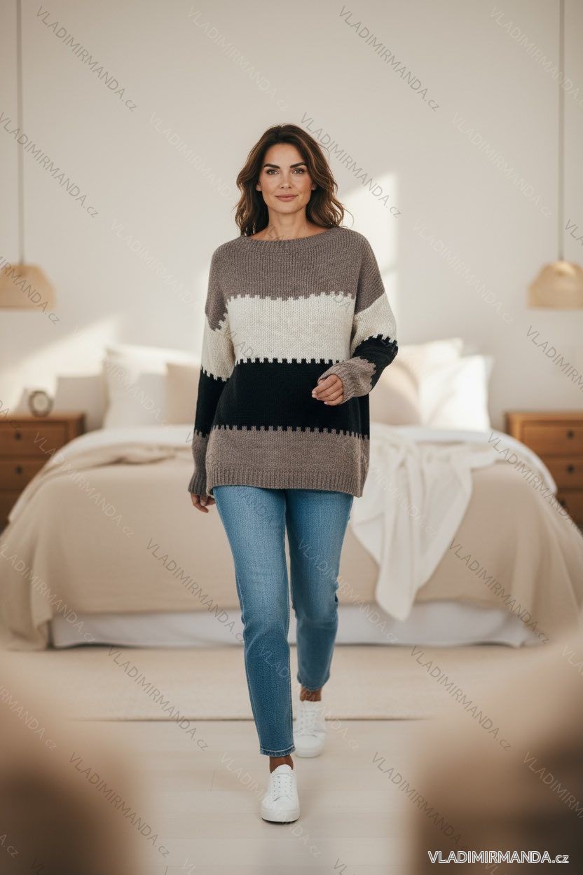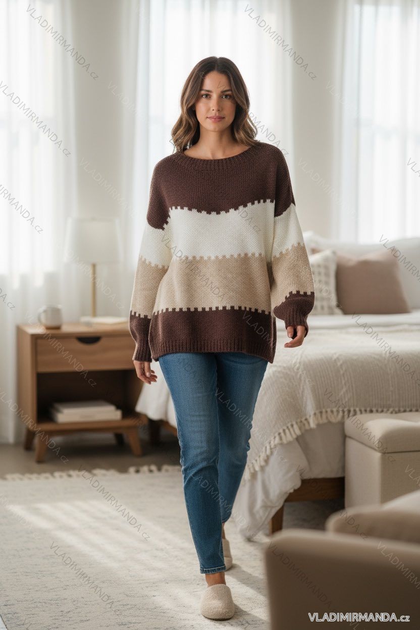 Women's oversized long sleeve knitted sweater (46/48/50 ONE SIZE) ITALIAN FASHION IMD25258
