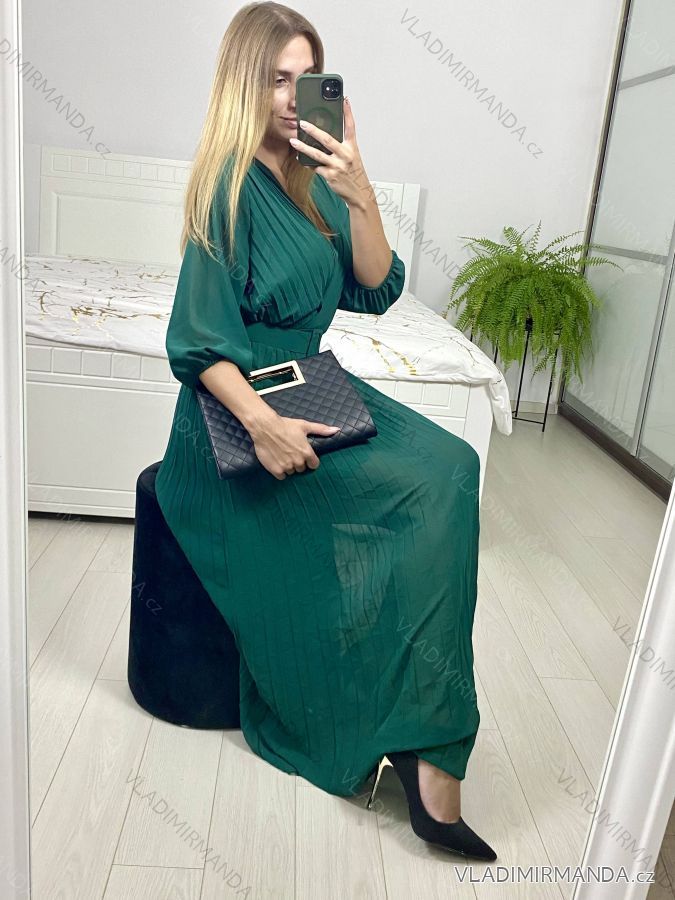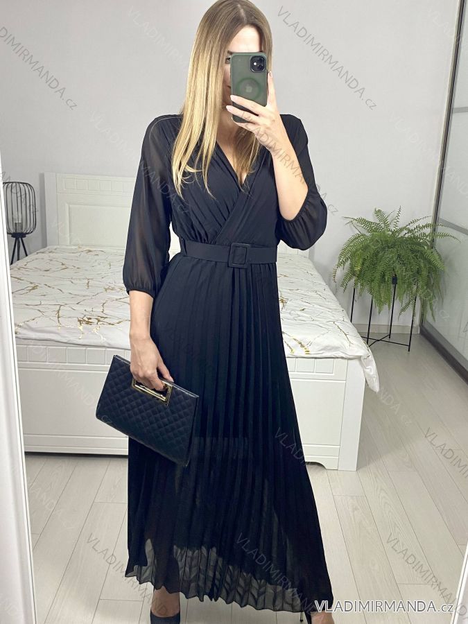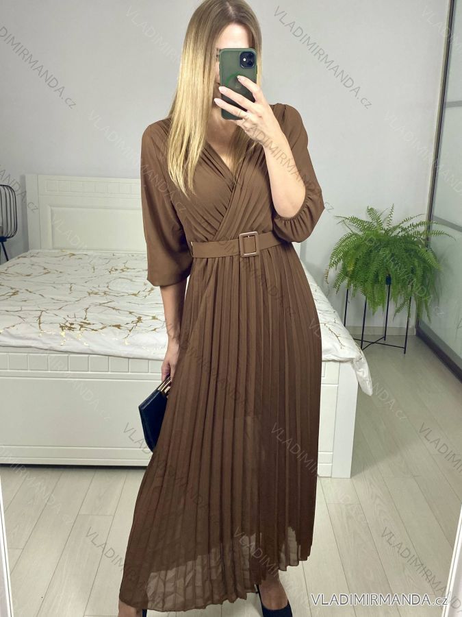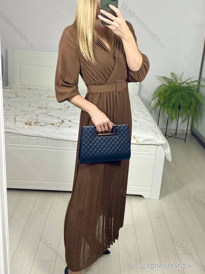 GOODS (121063) > Women's clothing (81994) > dress (30959) > Women's Belted Long Sleeve Chiffon Long Dress (S/M ONE SIZE) ITALIAN FASHION IMM23M9668