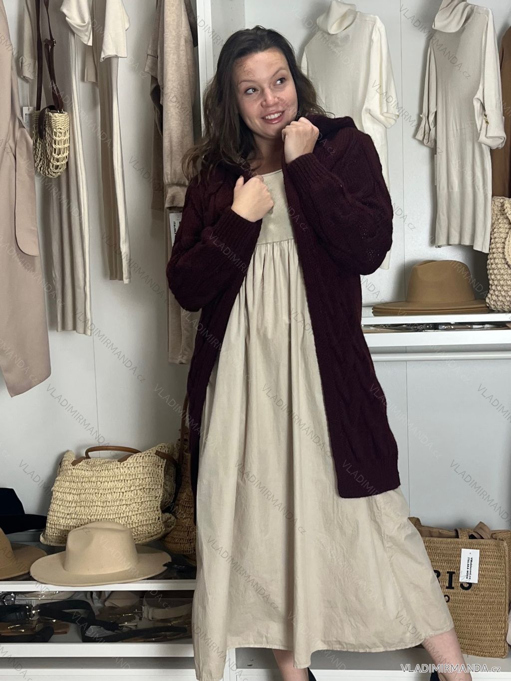GOODS (119503) > Women's clothing (80843) > Sweaters and cardigans (4542) > Women's cotton cardigan with hood (UNI SM) ITALIAN FASHION IMD20811 M / L wine