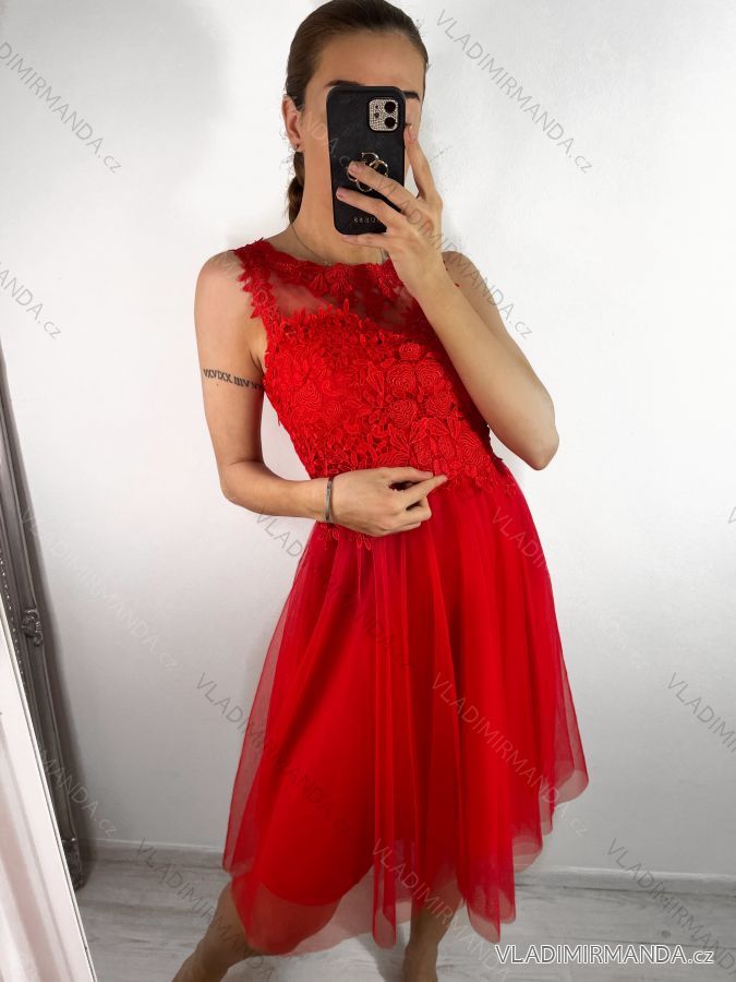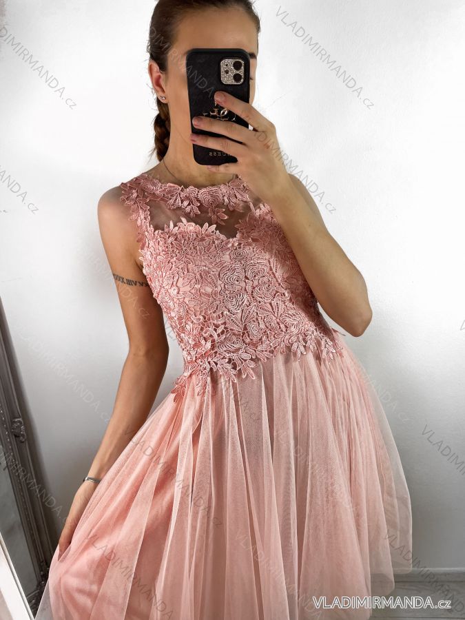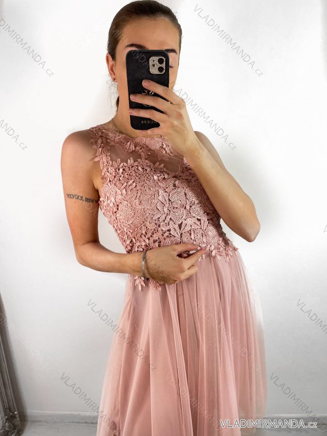 Šaty elegantní plesové bez rukávu krajka dámské (uni s/m) ITALSKá MóDA IM919828/DR S/M black