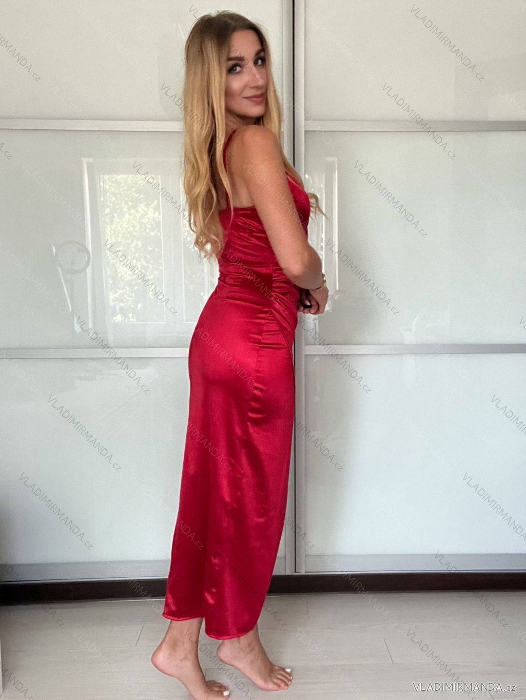 Elegant satin party dress with straps for women, back zipper closure, chest with padding,