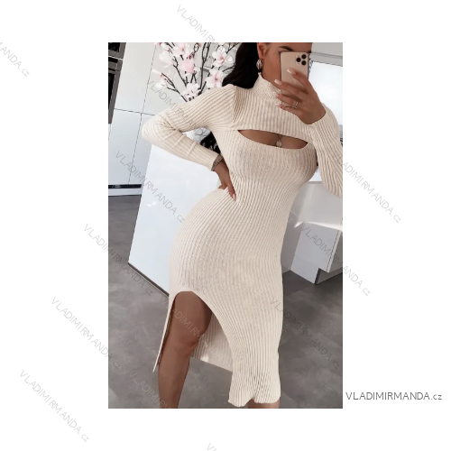 Women's Elegant Knitted Long Sleeve Dress (S/M ONE SIZE) ITALIAN FASHION IMPBB22Y22990