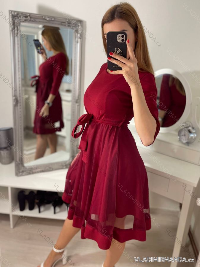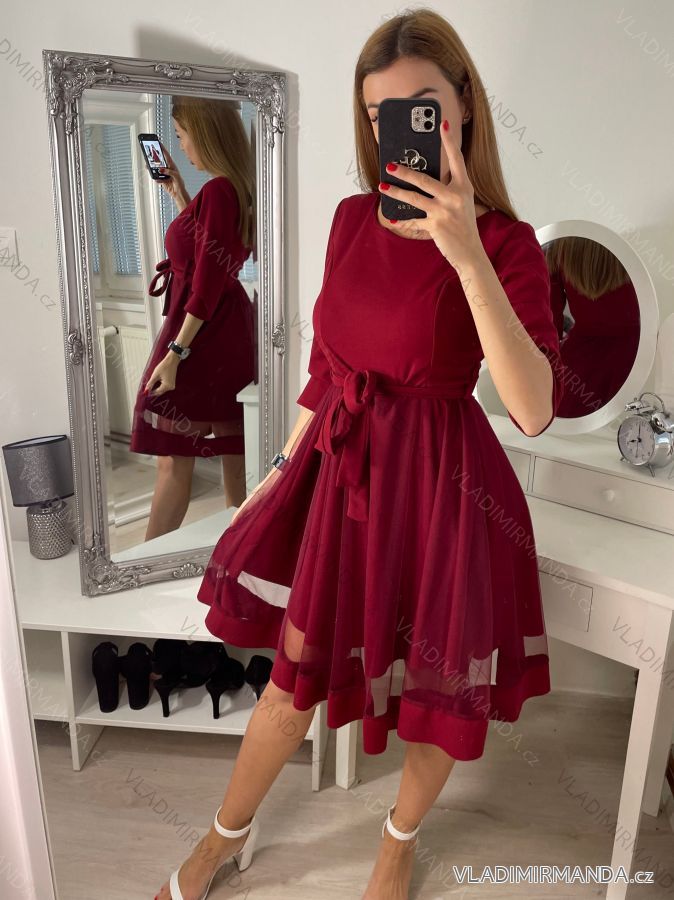 GOODS (120465) > Women's clothing (81583) > dress (30635) > Social dress (5001) > Ball gown short (1328) > Women's elegant party long sleeve dress (S/M ONE SIZE) ITALIAN FASHION IM322282 Wine S/M