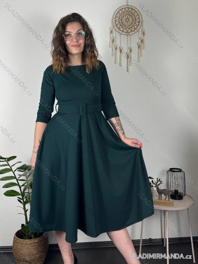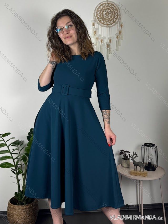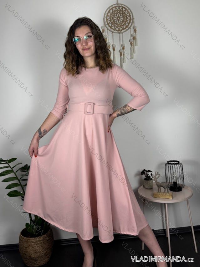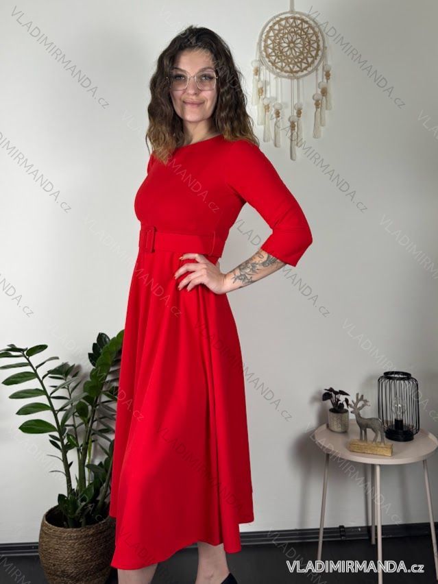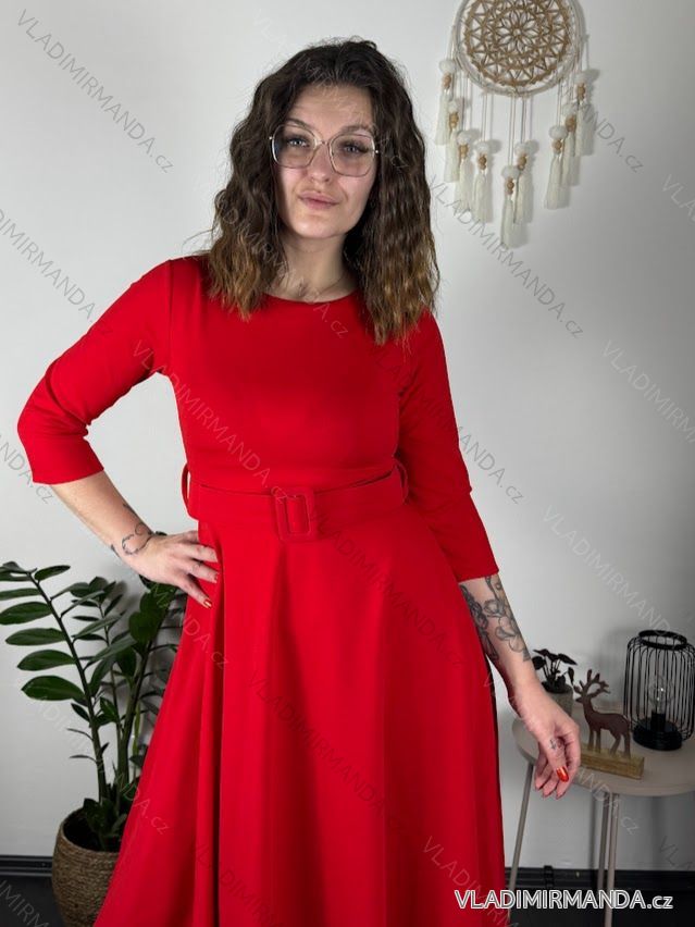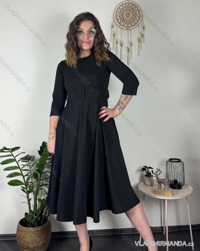 Women's elegant party long sleeve dress (S/M ONE SIZE) ITALIAN FASHION IM322282 black S/M/L
