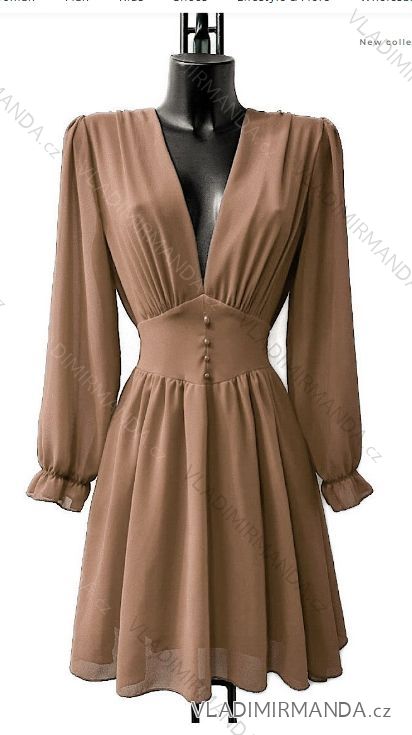 Women's Long Chiffon Short Sleeve Dress (S/M ONE SIZE) ITALIAN FASHION IMWGS231048 beige S / M