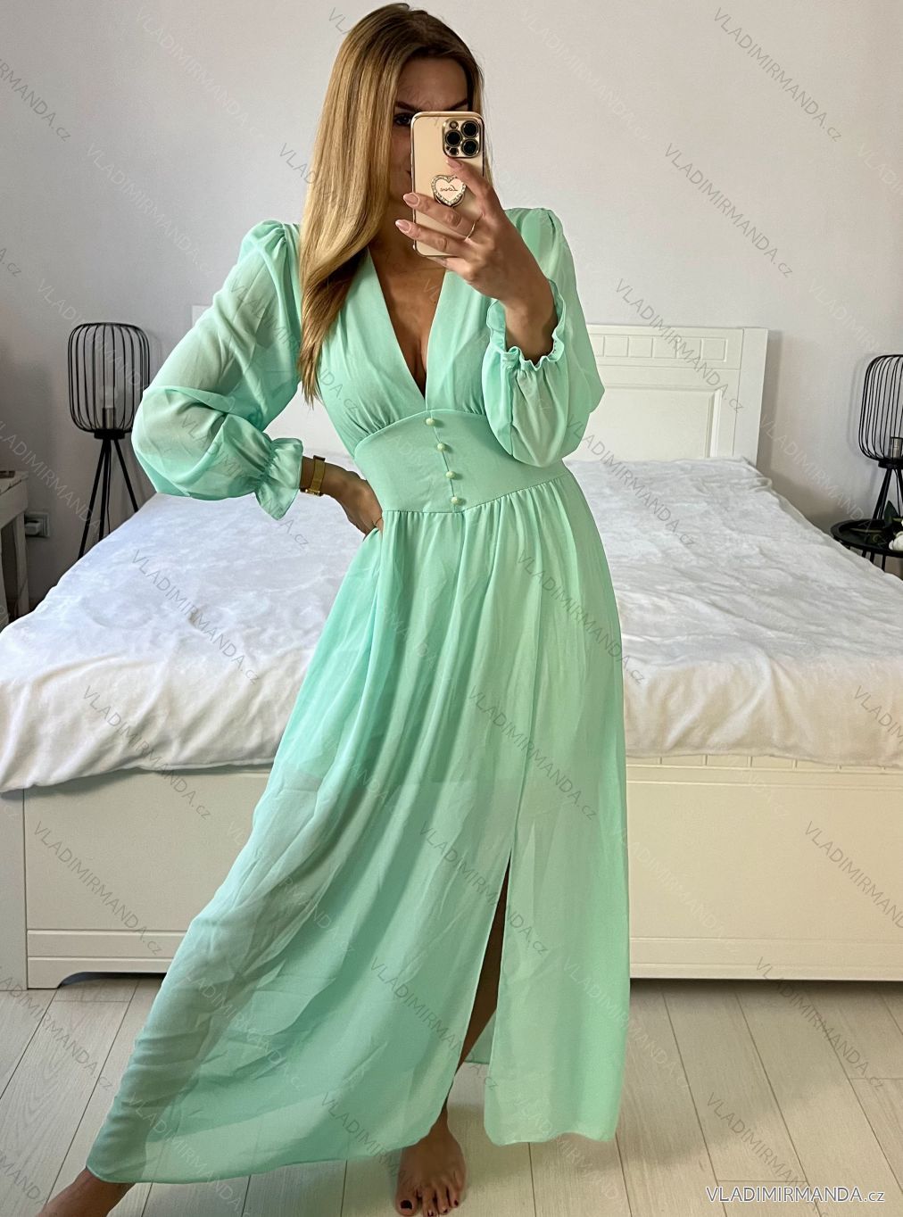 Women's Long Chiffon Short Sleeve Dress (S/M ONE SIZE) ITALIAN FASHION IMWGS231048 - light green - S / M