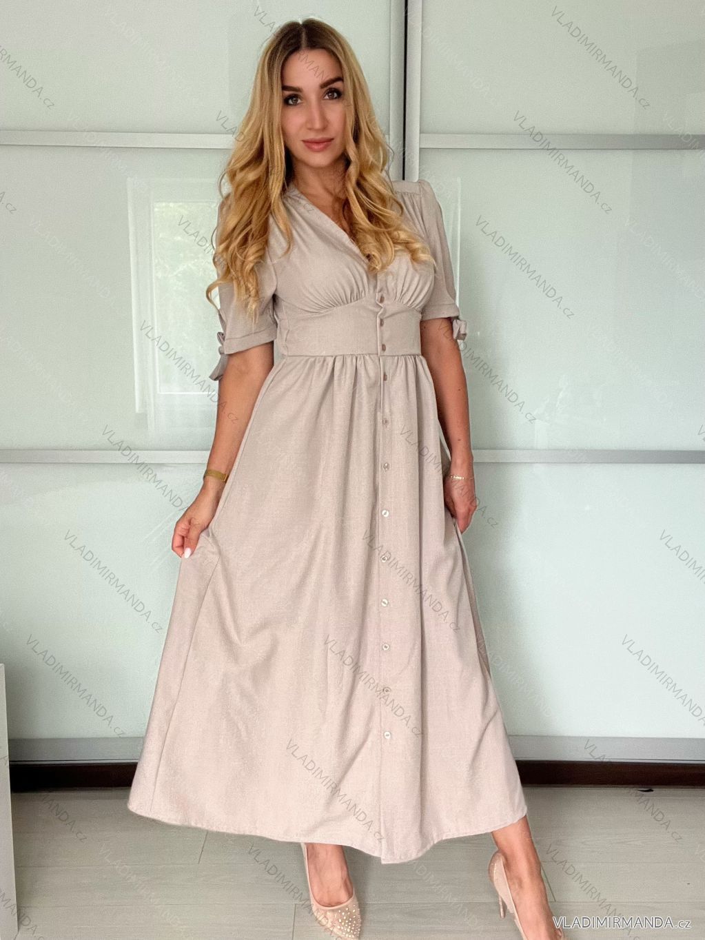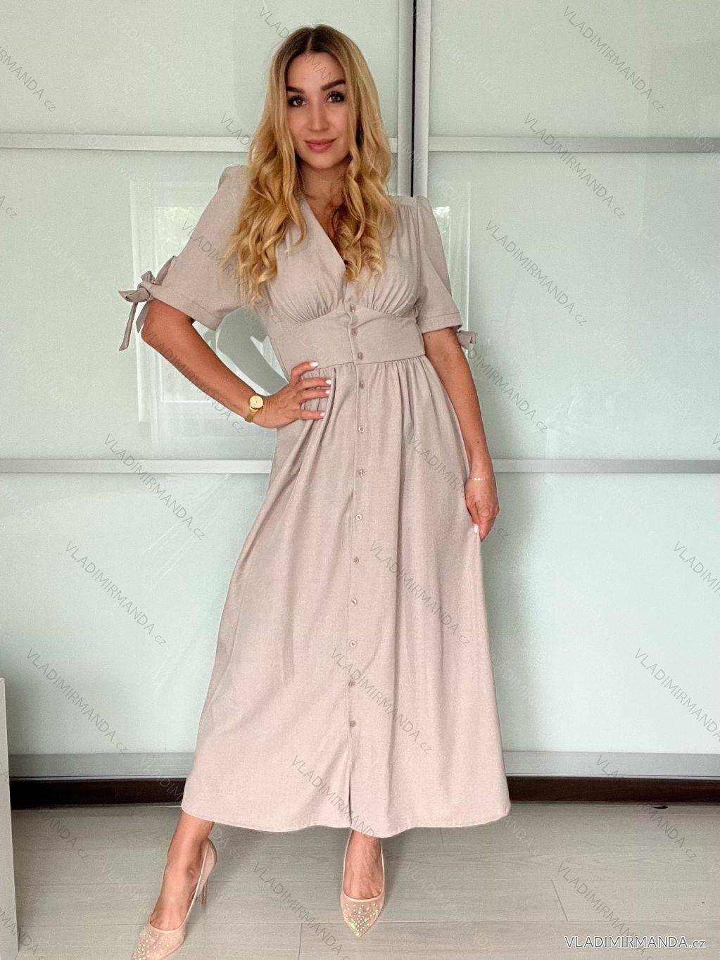 Women's Long Chiffon Short Sleeve Dress (S/M ONE SIZE) ITALIAN FASHION IMWGS231048 - beige - S / M