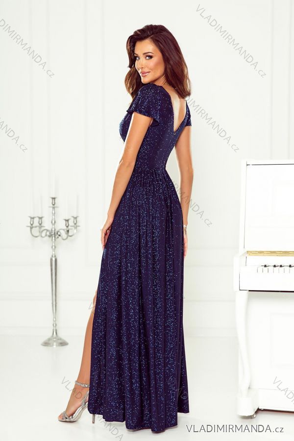 Women's Long Elegant Dress with Wide Straps (SL) FRENCH FASHION FMPEL23VELVET dark blue 44
