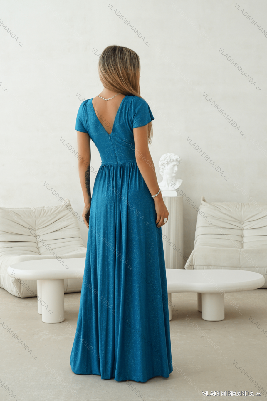 GOODS (120551) > Women's clothing (81918) > dress (30968) > Women's Long Elegant Dress with Wide Straps (SL) FRENCH FASHION FMPEL23VELVET turquoise 34