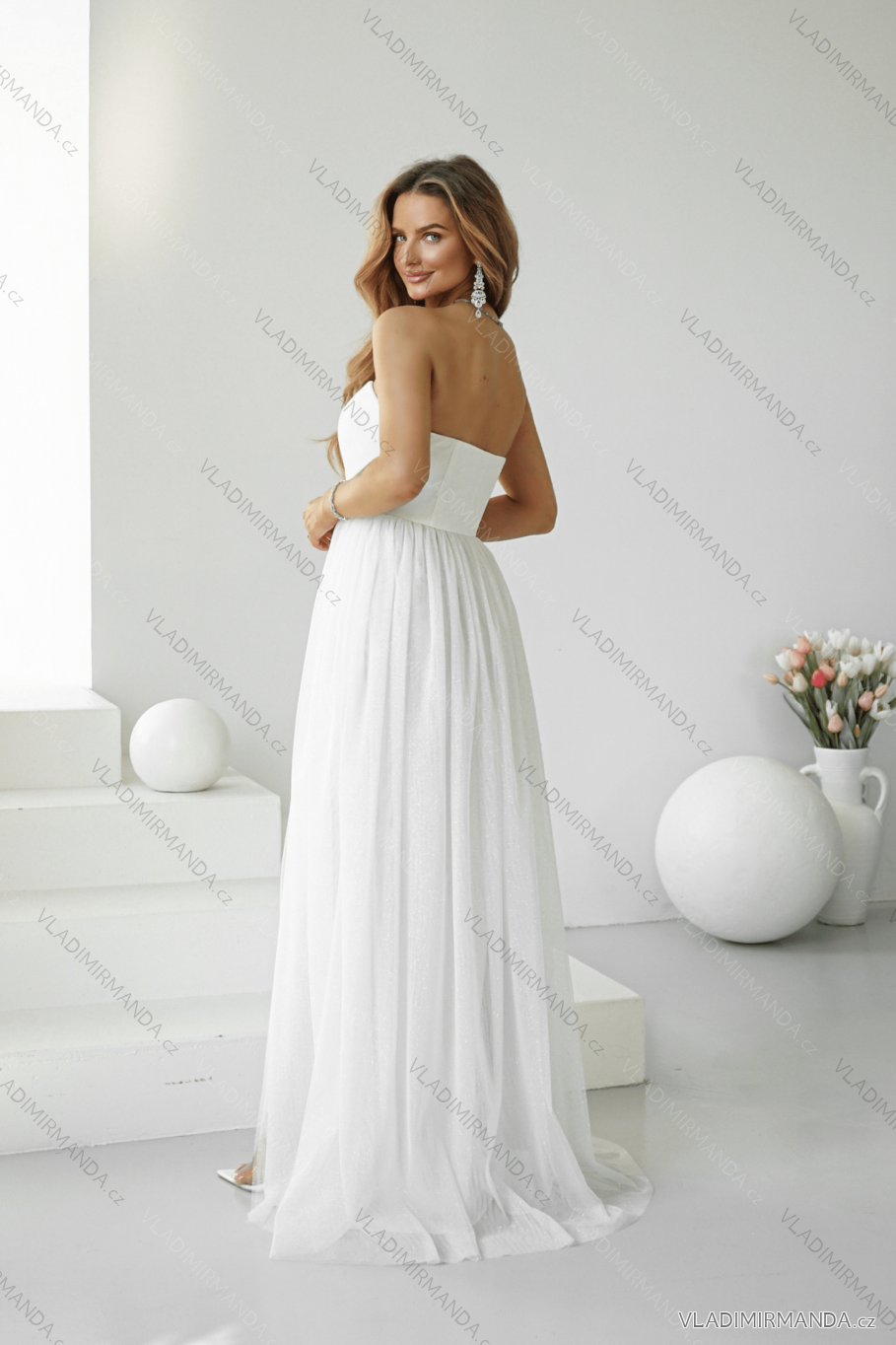 Women's Long Elegant Dress with Wide Straps (SL) FRENCH FASHION FMPEL23VELVET white 38