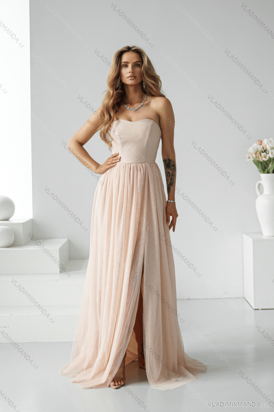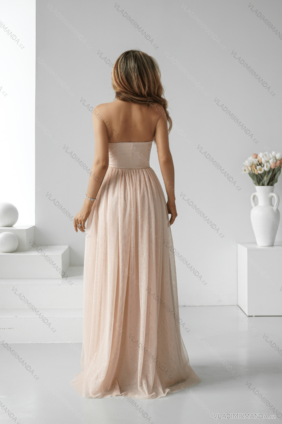 GOODS (125128) > Women's clothing (81797) > dress (30893) > Women's Long Elegant Dress with Wide Straps (SL) FRENCH FASHION FMPEL23VELVET béžová smetanová 34