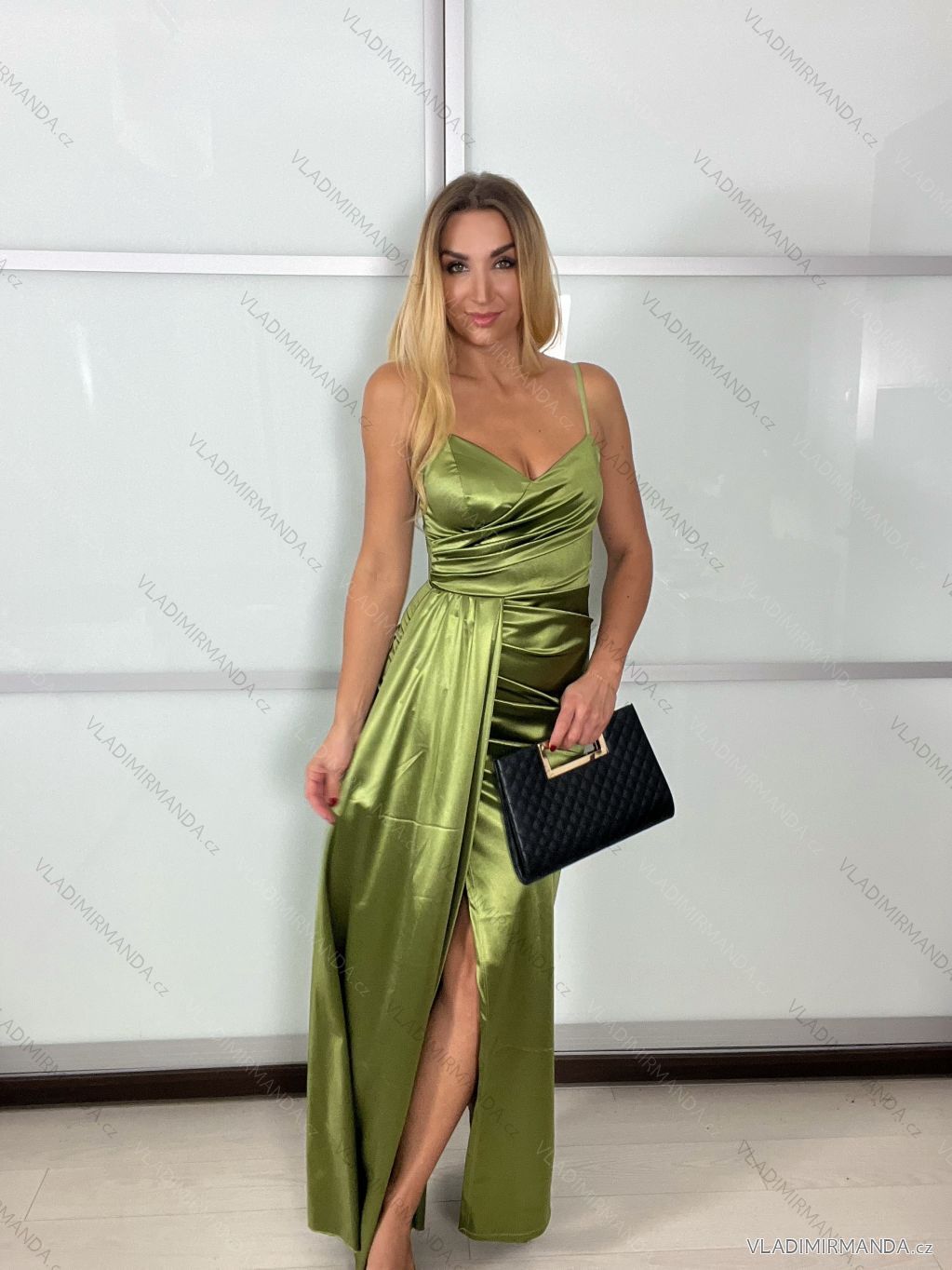 GOODS (120744) > Women's clothing (82104) > dress (31059) > Women's long elegant party dress with straps (S/M ONE SIZE) ITALIAN FASHION IMPBB23B23376/DU - olive green - S / M