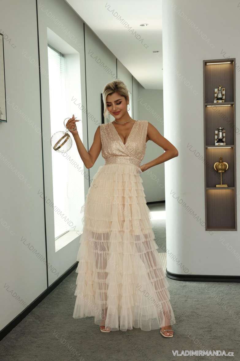 Women's Long Elegant Pleated Sleeveless Dress (S/M ONE SIZE) ITALIAN FASHION IMPBB23C3051 Golden S/M
