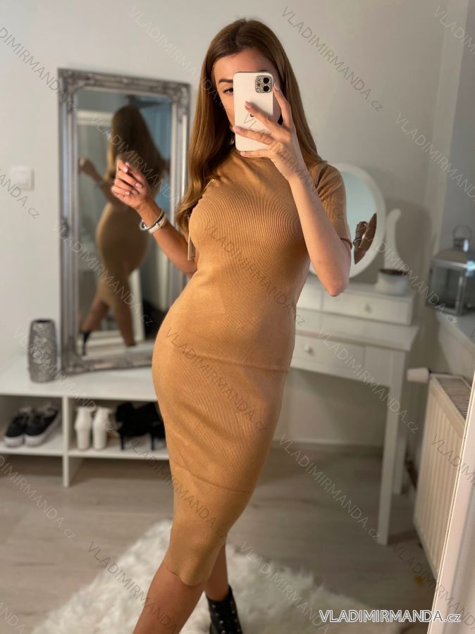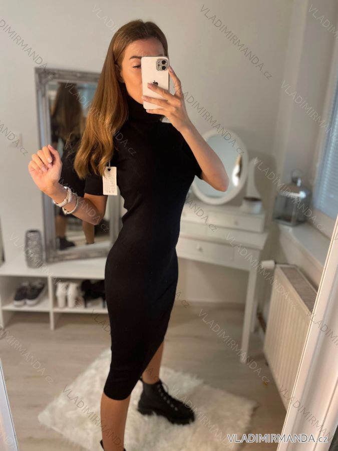 Women's Long Knitted Turtleneck Short Sleeve Dress (S/M ONE SIZE) ITALIAN FASHION IMM22FD51751