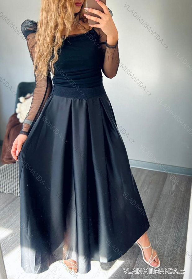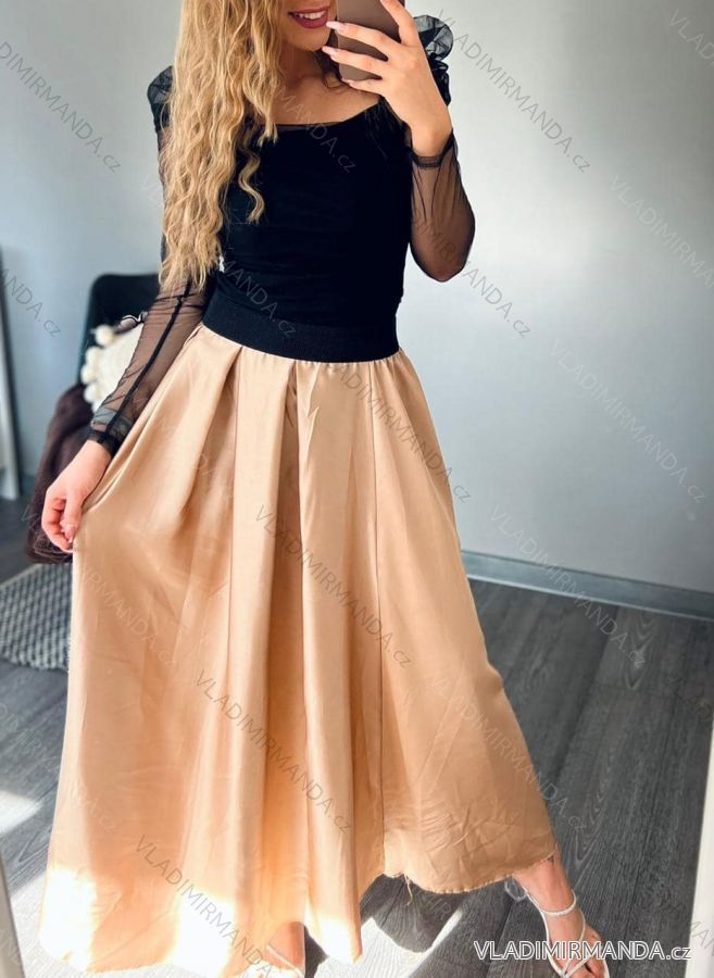 Women's Long Satin Skirt (S/M ONE SIZE) ITALIAN FASHION IMD232507