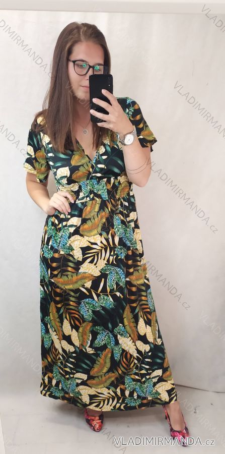 Women's Long Short Sleeve Dress (S / M ONE SIZE) FRENCH FASHION FMB21008