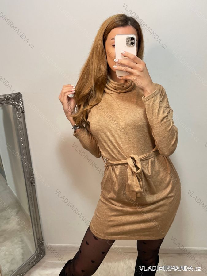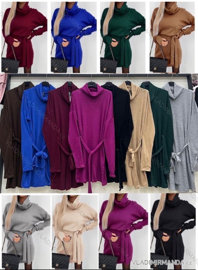 GOODS (119419) > Women's clothing (80848) > dress (30318) > Women's Long Sleeve Belted Turtleneck Knit Dress (S/M/L ONE SIZE) ITALIAN FASHION IMWB22371