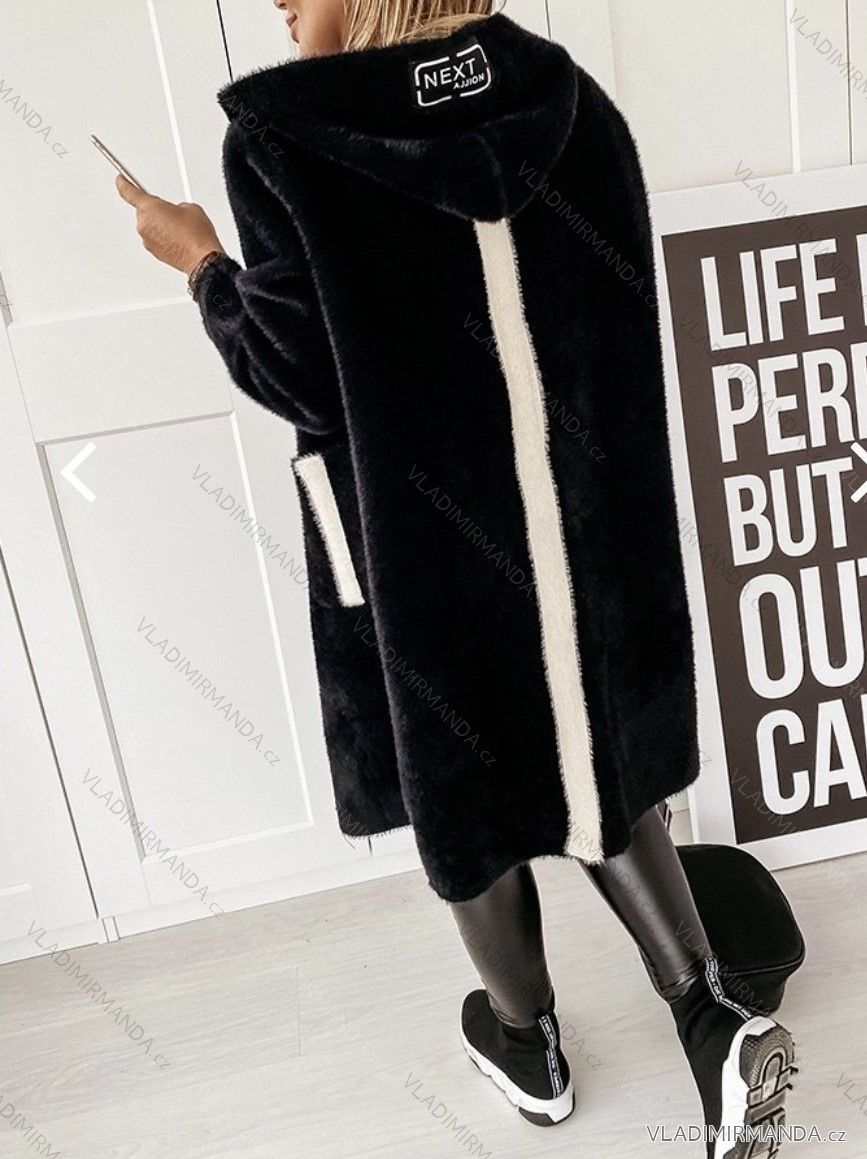 Women's Long Sleeve Hooded Alpaca Coat (S/M ONE SIZE) POLISH FASHION IMWK23747
