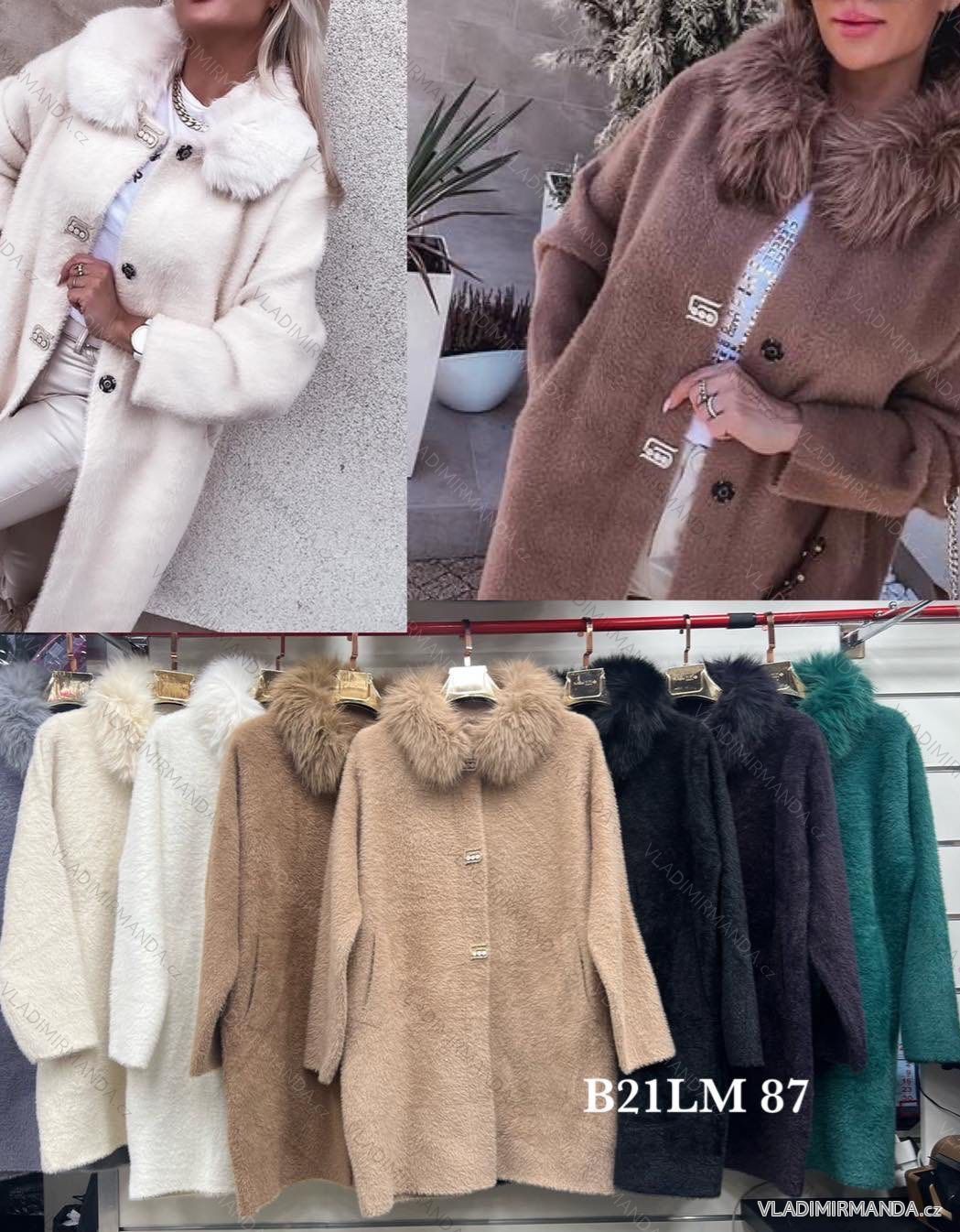 Women's Long Sleeve Hooded Alpaca Coat (S/M ONE SIZE) POLISH FASHION IMWK23747