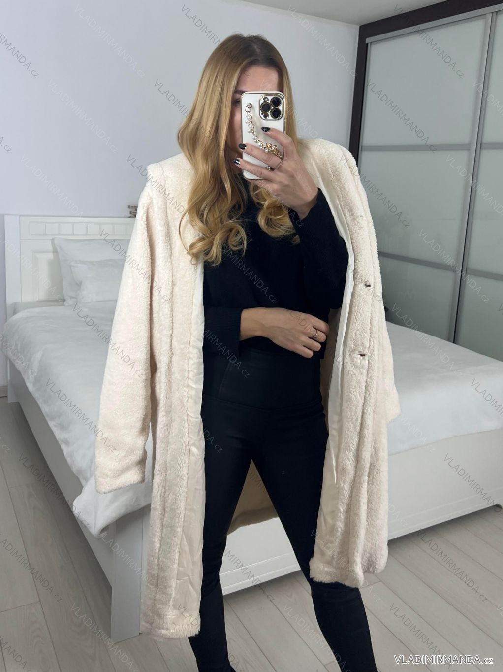 Kabát beránkový s kapucí dlouhý rukáv dámský (S/M/L ONE SIZE) ITALSKÁ MÓDA IMWDD24257 - white - S/M/L