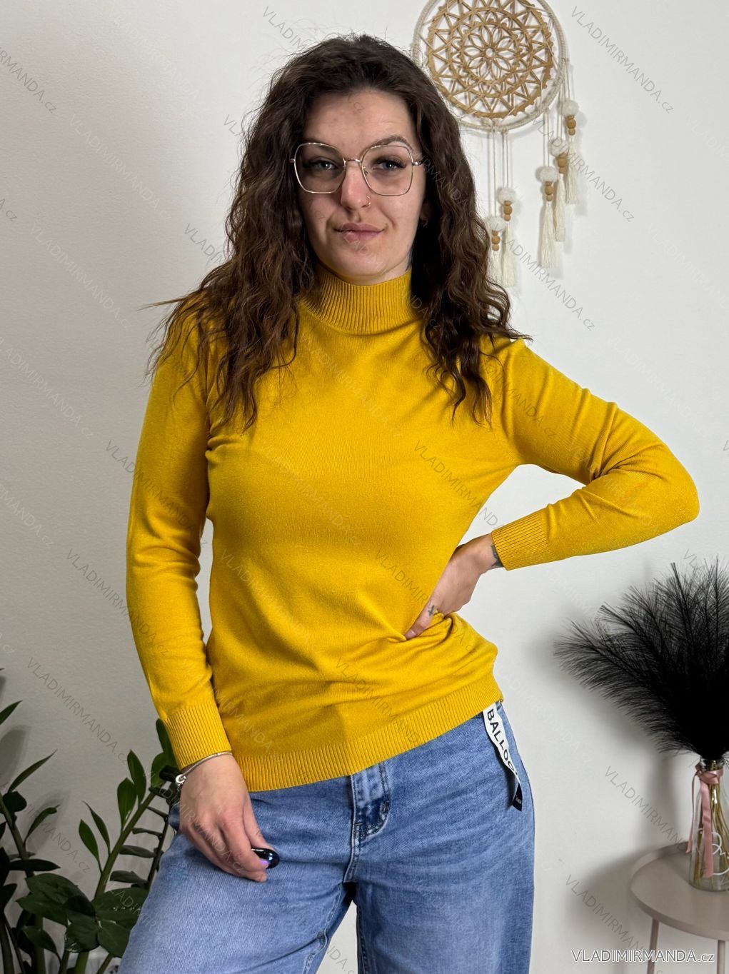 Women's long sleeve knitted sweater with stand-up collar (XS/S/M ONE SIZE) EXTRAME ITALIAN FASHION IMM23M5821 žlutá hořčicová S / M / L