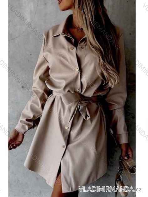 Women's Long Sleeve Leather Shirt Dress (S/M ONE SIZE) ITALIAN FASHION IMWB22281