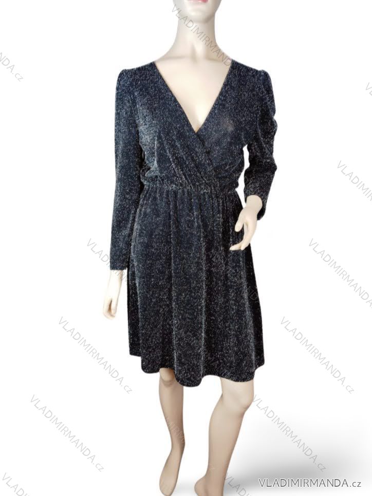 Šaty košilové dlouhý rukáv dámské (S/M ONE SIZE) ITALSKÁ MÓDA IM622105 - Colour black - Size S/M