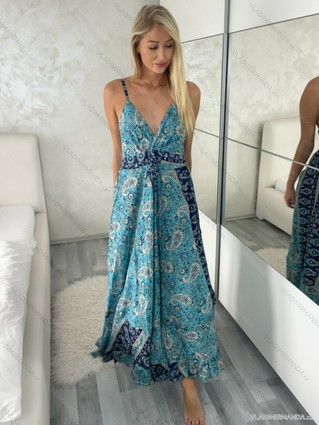 Women's Long Sleeve Summer Shirt Dress (S/M/L ONE SIZE) INDIAN FASHION IMWY23123 S / M / L blue