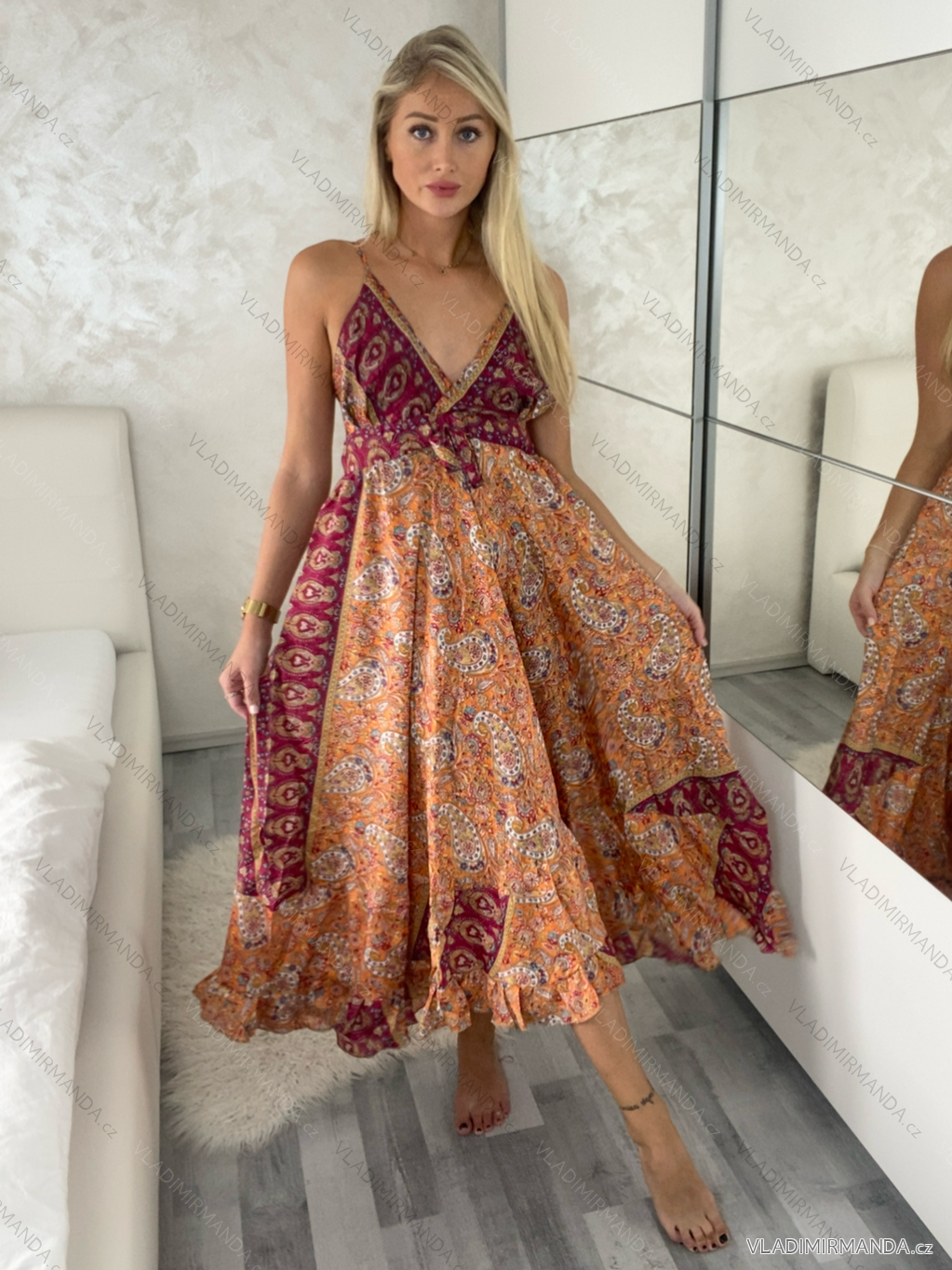 GOODS (120476) > Women's clothing (81594) > dress (30655) > Indian dress (160) > Women's Long Sleeve Summer Shirt Dress (S/M/L ONE SIZE) INDIAN FASHION IMWY23123 S / M / L oranžová