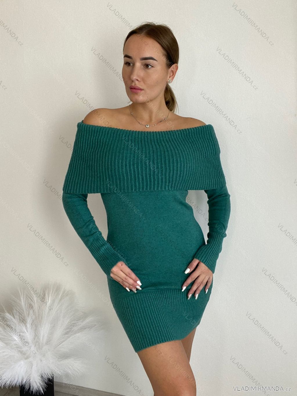 GOODS (119519) > Women's clothing (80858) > dress (30318) > Šaty úpletové s rolákem dlouhý rukáv dámské (S/M ONE SIZE) FRANCOUZSKÁ MÓDA FMB24D-525 - green - S / M