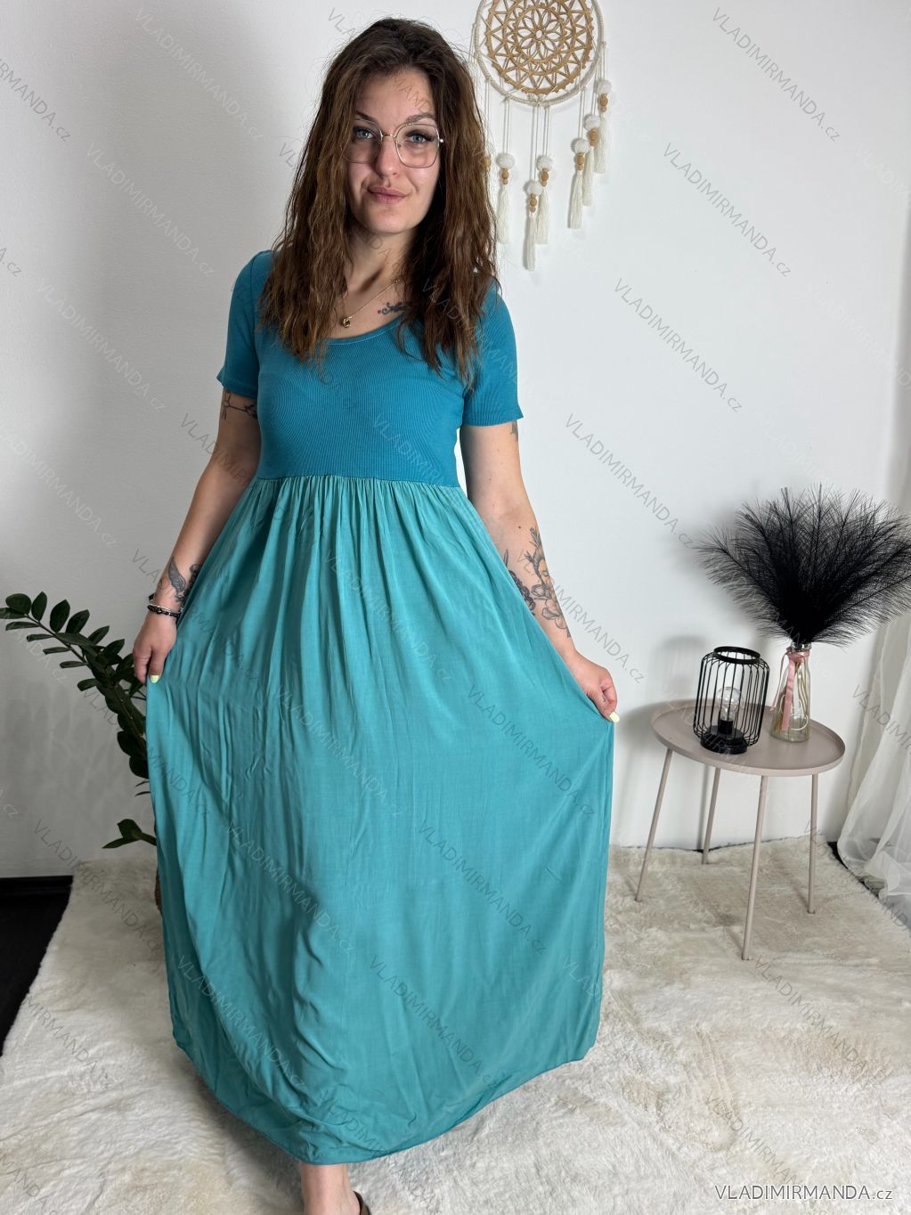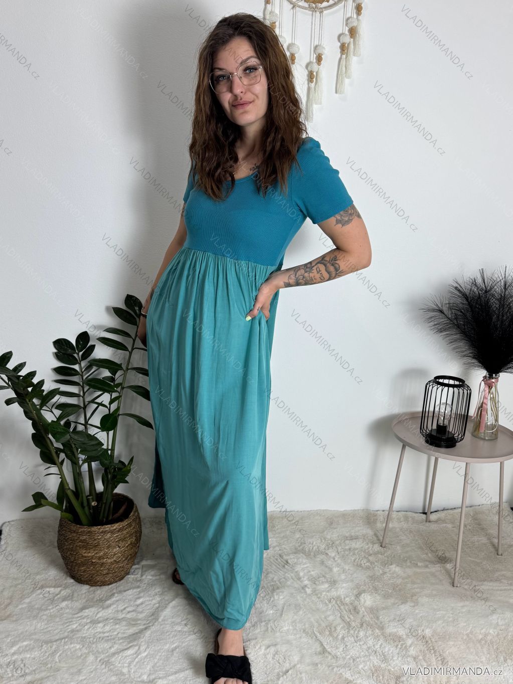 Women's long summer ribbed short sleeve dress (XS/S/M/L ONE SIZE) ITALIAN FASHION IMSM25128