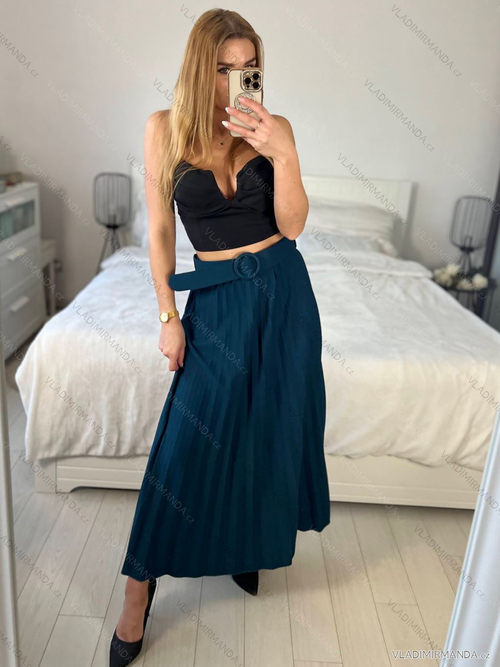 Women's Mid-Length Belted Pleated Skirt (S/M ONE SIZE) ITALIAN FASHION IMM23M23123 - beige - S / M
