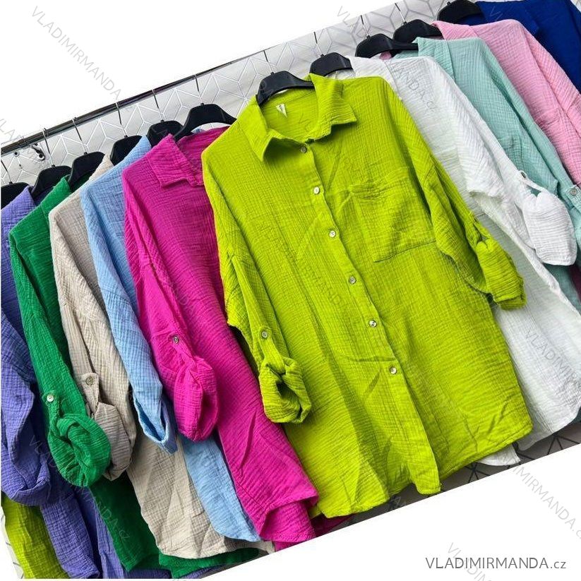 Women's Oversize Long Sleeve Muslin Shirt (S/M ONE SIZE) ITALIAN FASHION IMWC232585