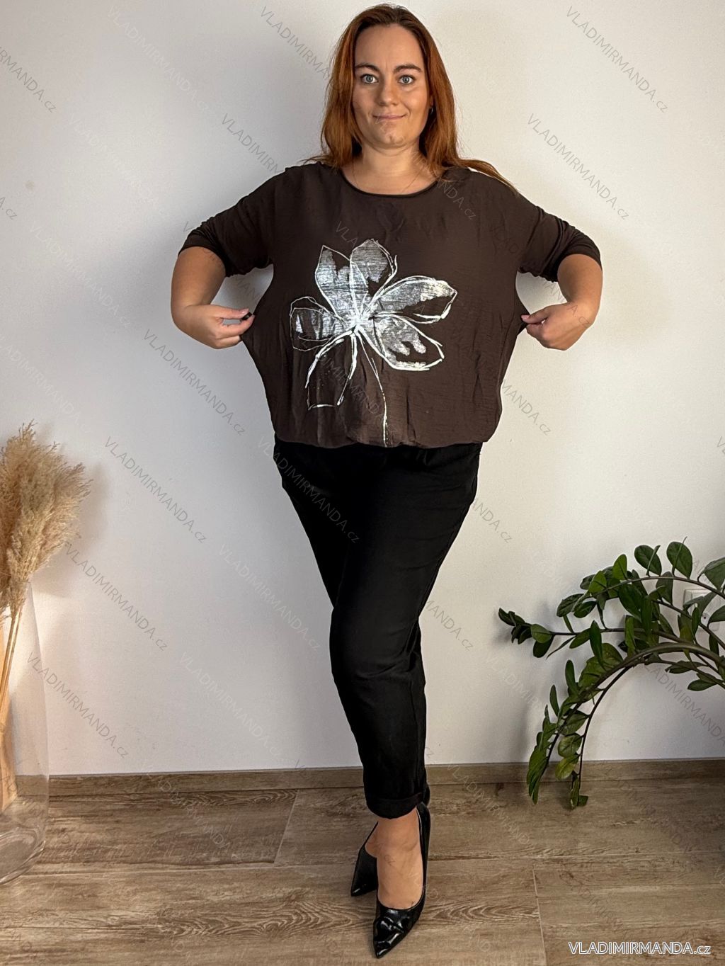 GOODS (120108) > Women's clothing (81367) > Tops, t-shirts, tunics and tank tops (12914) > T-shirts (5526) > T-shirts long sleeve oversized XXL (321) > Women's oversized stretch sweatpants (50/52 ONE SIZE) ITALIAN FASHION IM425016 Brown