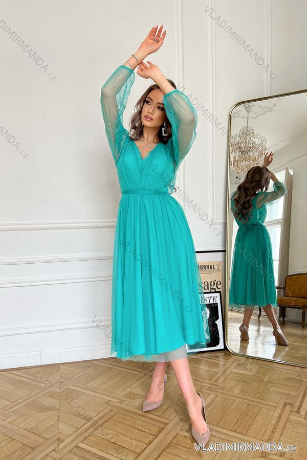 Women's Plus Size (42-46) Long Elegant Party Sleeveless Dress POLISH FASHION PMLBC23265-10 turquoise 34