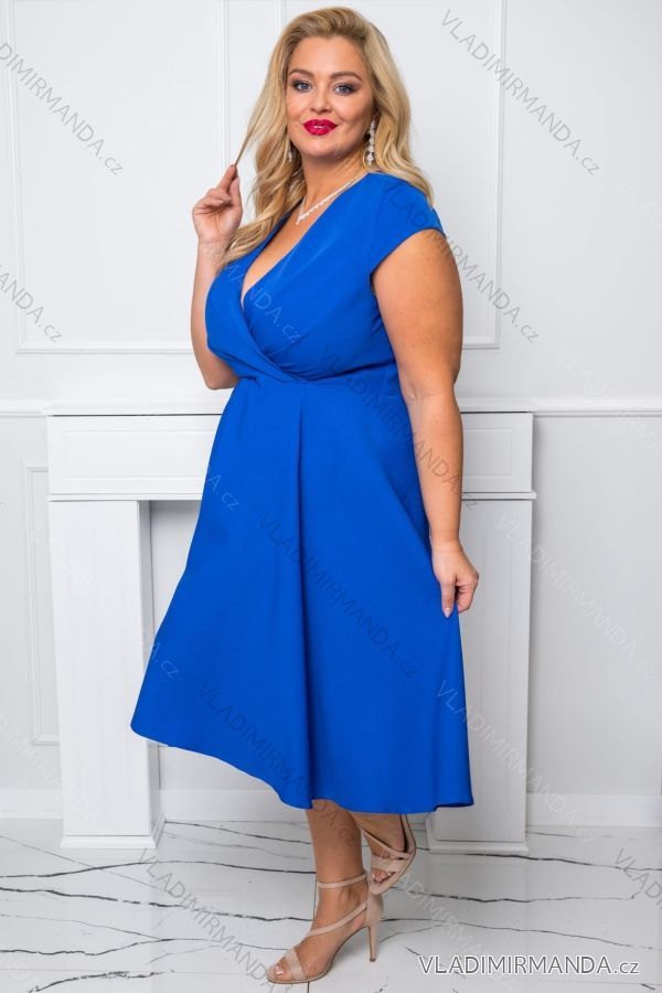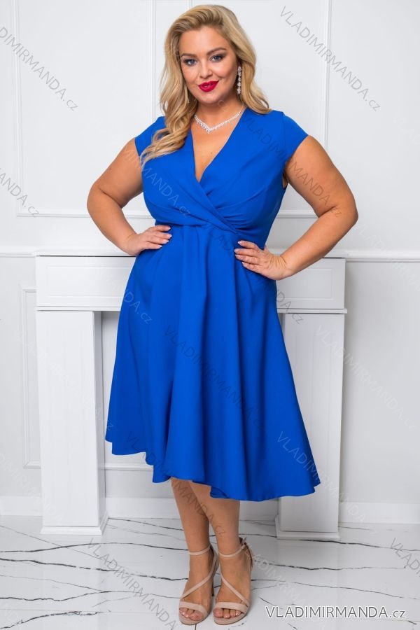 Women's Plus Size (42-46) Long Elegant Party Sleeveless Dress POLISH FASHION PMLBC23265-10 Royal blue 42