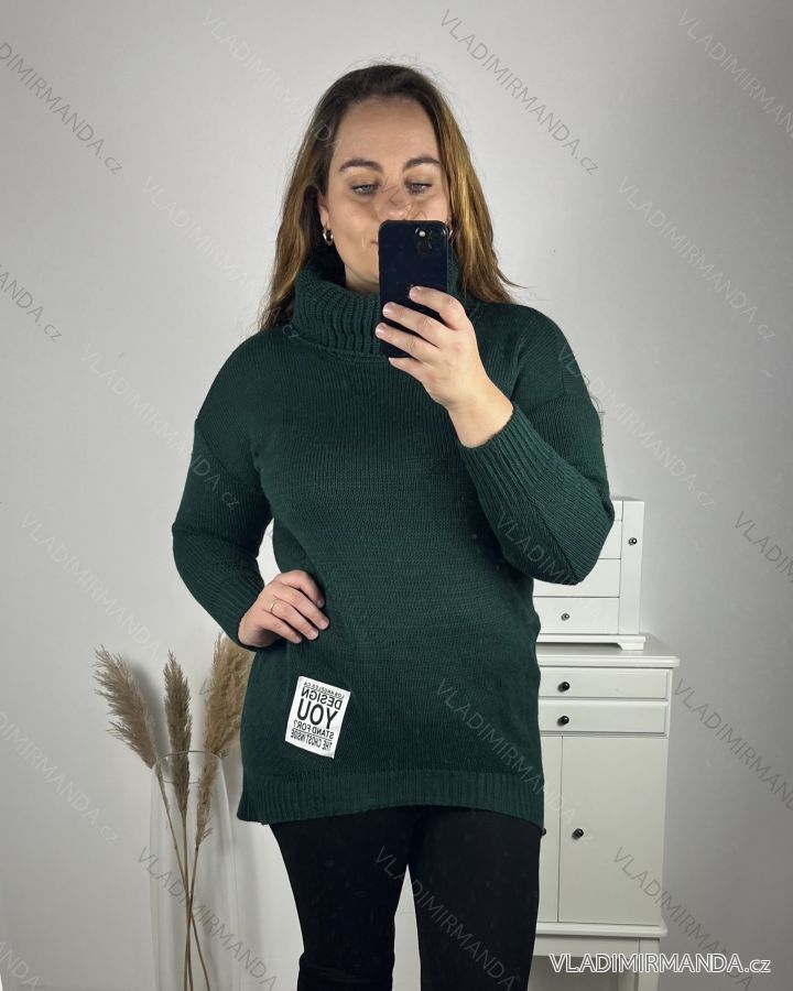 GOODS (119492) > Women's clothing (80913) > Sweaters and cardigans (4547) > Warm sweater coarse (1327) > Women's Plus Size Knitted Extended Long Sleeve Sweater (2XL/3XL ONE SIZE) ITALIAN FASHION IM423758 2XL/3XL Emerald