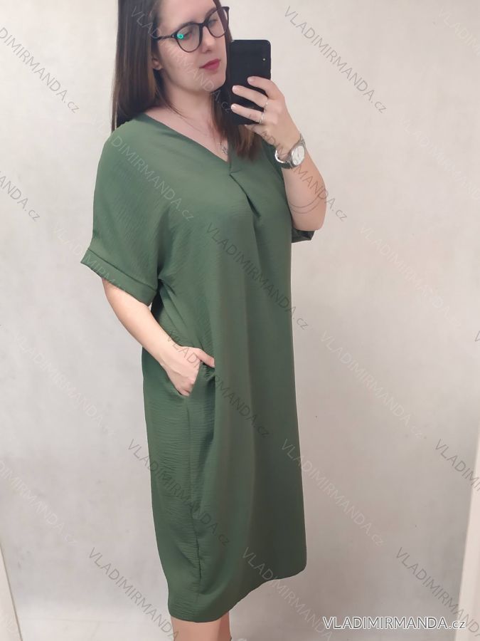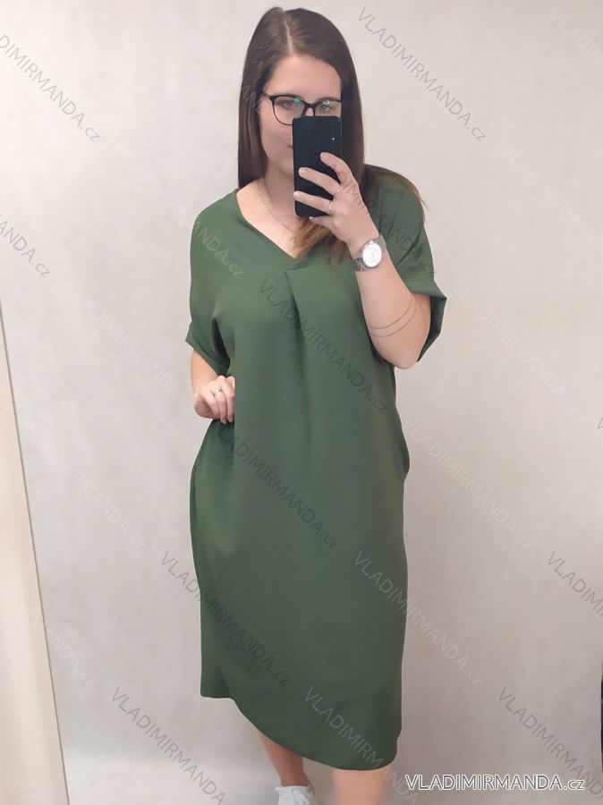 Šaty oversize krátký rukáv dámské (L/XL/2XL/3XL ONE SIZE) ITALSKÁ MÓDA IMD20451 4XL / 5XL kerosene