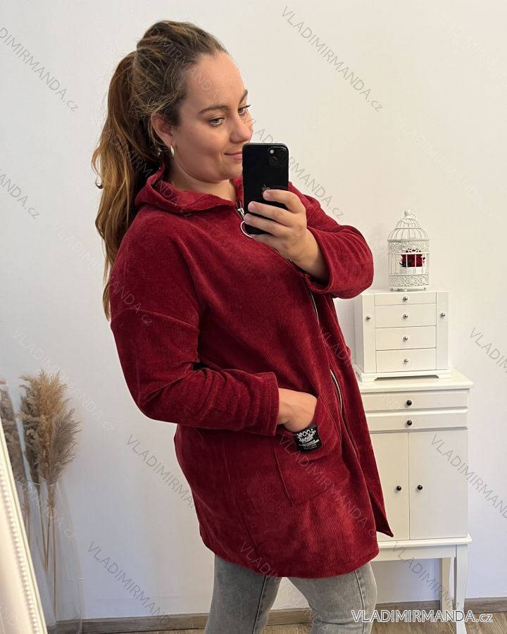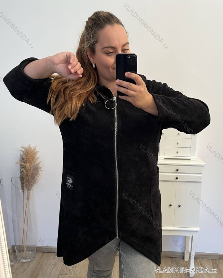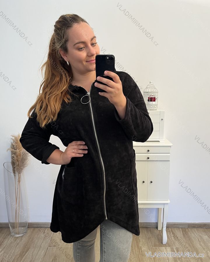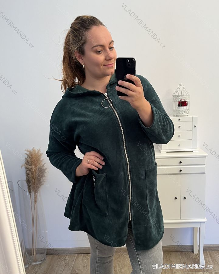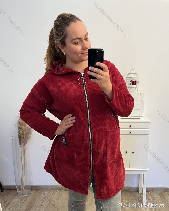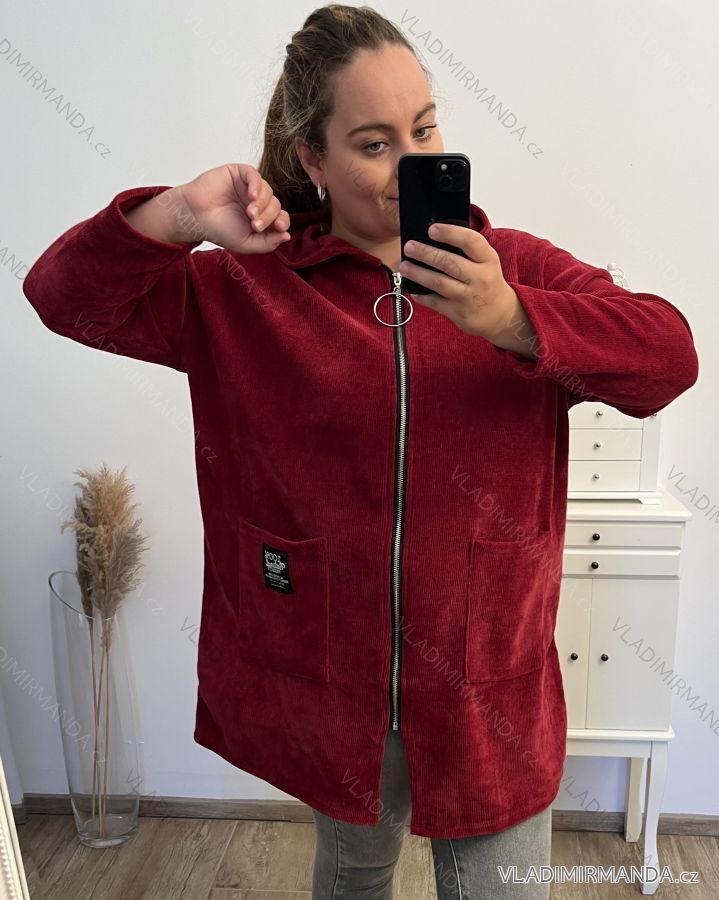 Women's Plus Size Long Sleeve Zipper Warm Long Sleeve Hoodie (2XL/3XL/4XL ONE SIZE) ITALIAN FASHION IMD23744