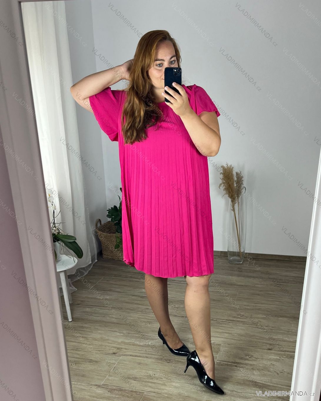 Women's Plus Size Short Sleeve Dress (52/56 ONE SIZE) ITALIAN FASHION IMBM24080 52/54 dark pink