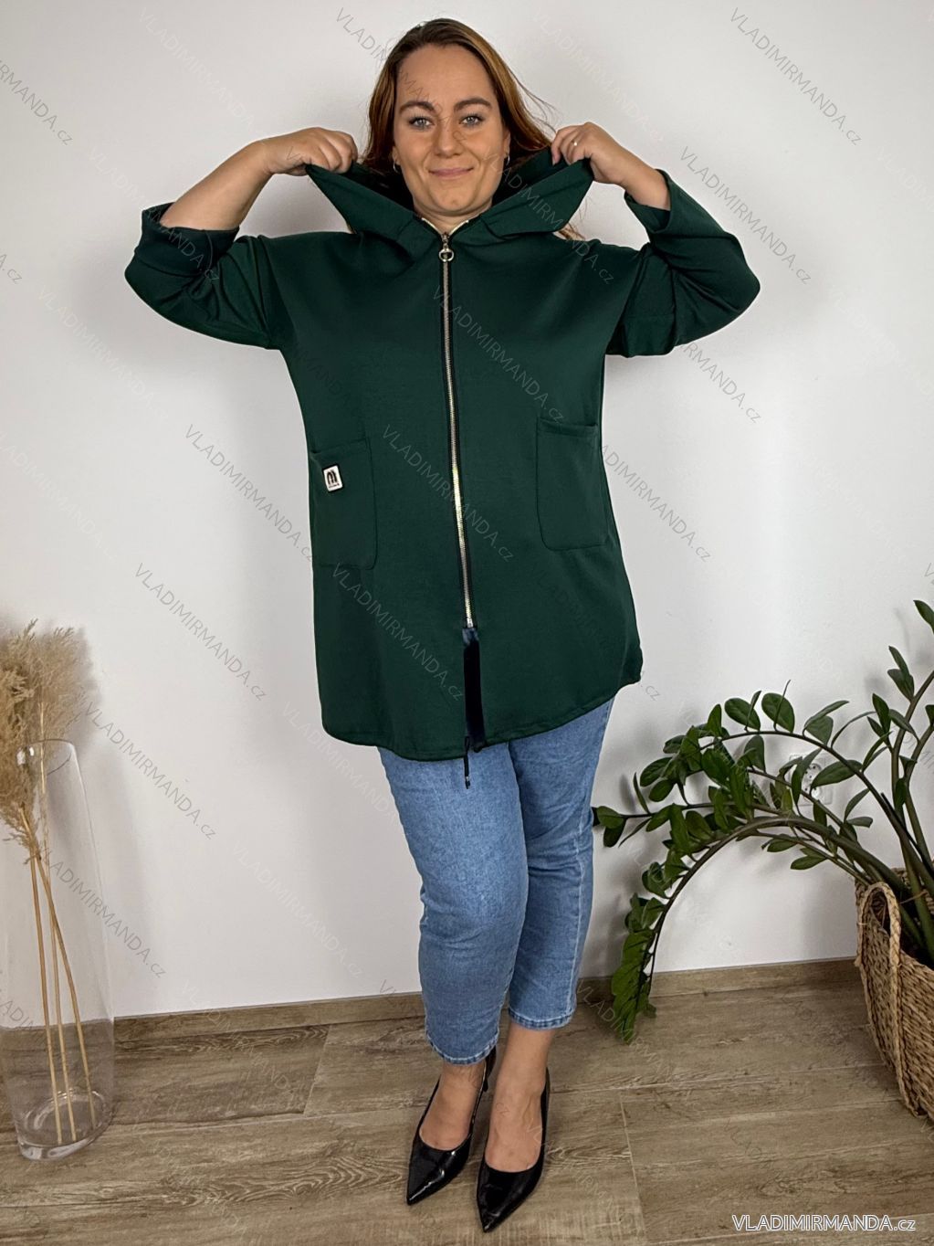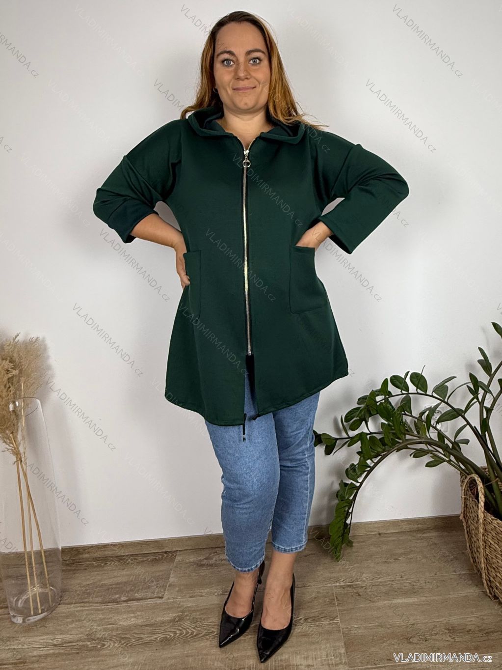 Women's Plus Size Zipper Hoodie Long Sleeve (2XL/3XL ONE SIZE) ITALIAN FASHION IMC23382 50/52/54 dark emerald