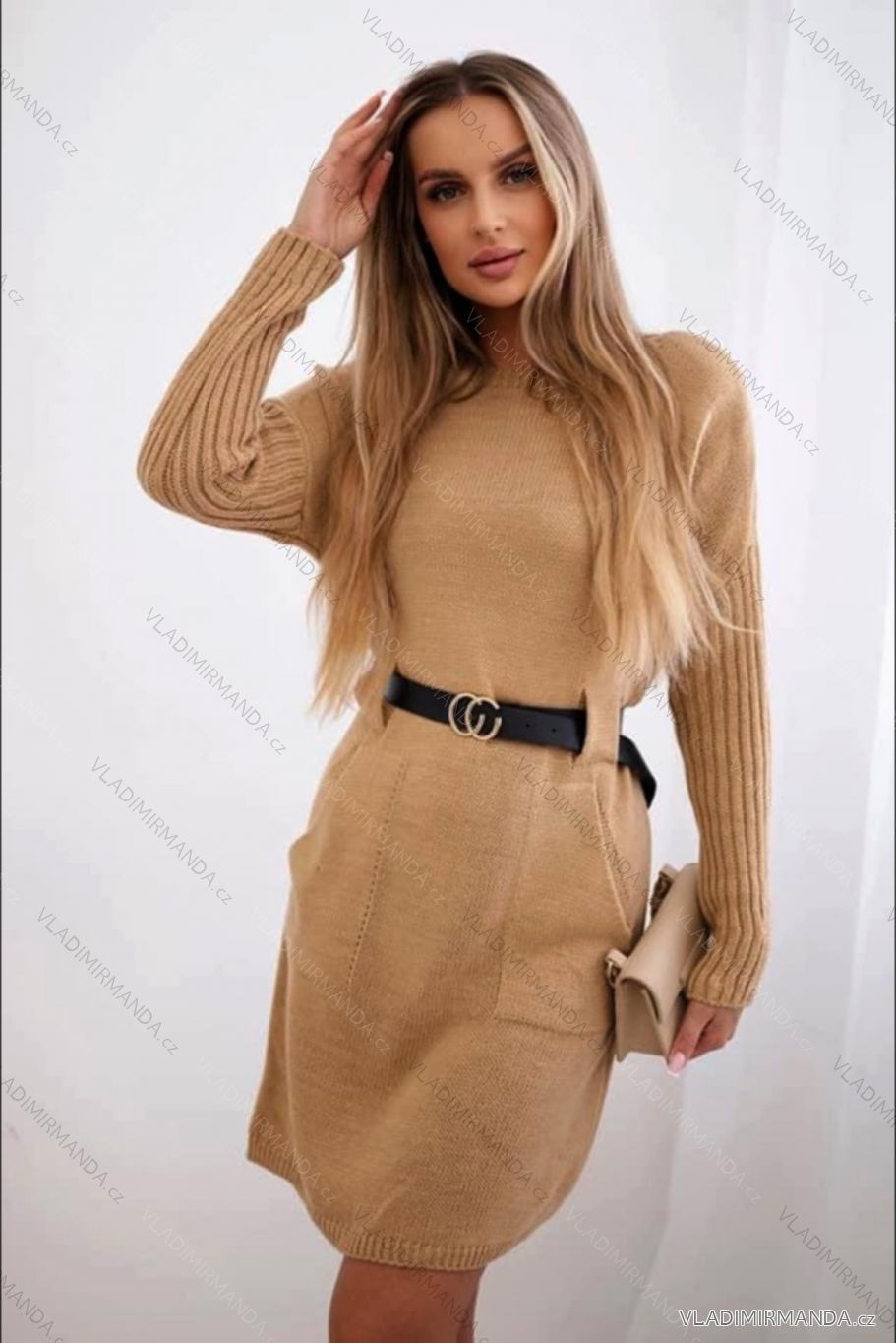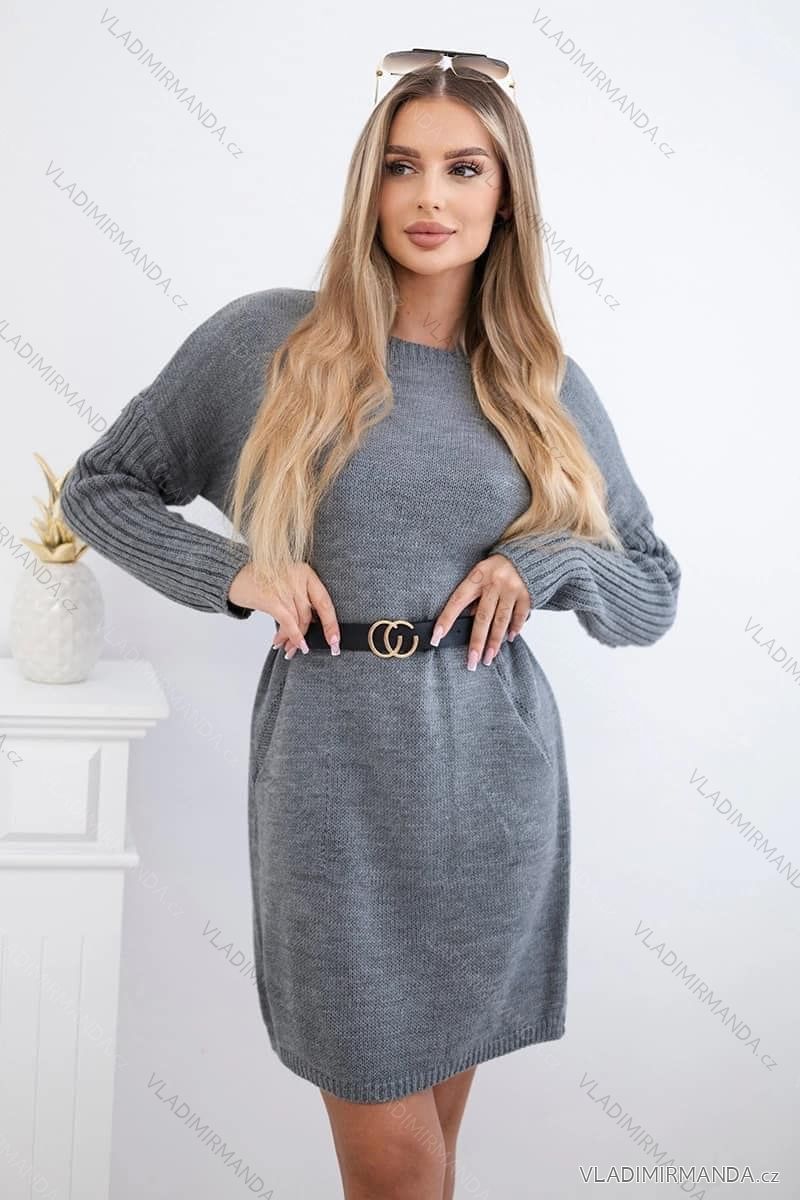 Women's Short Knitted Long Sleeve Dress (S/M ONE SIZE) ITALIAN FASHION IM424325